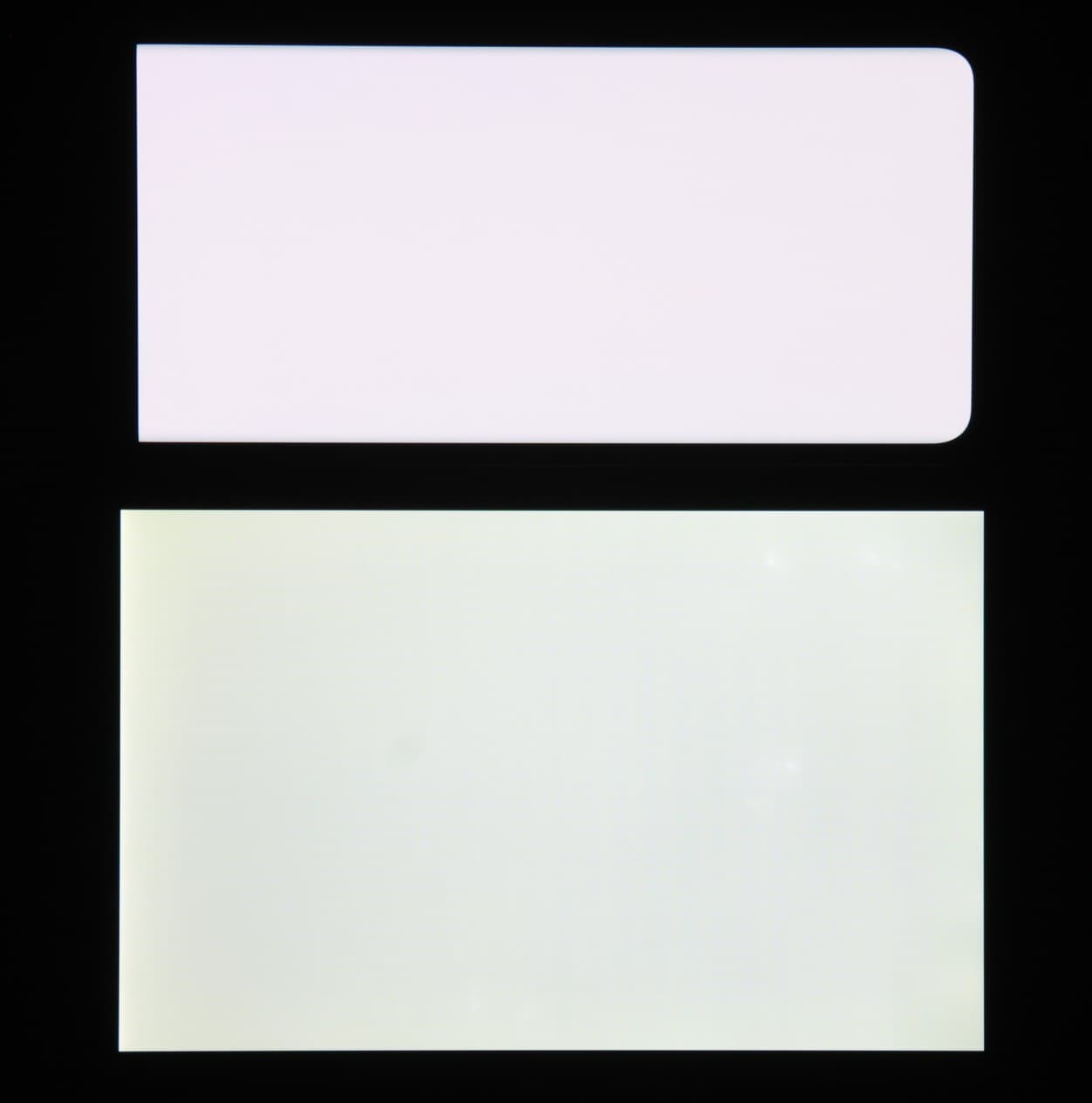 Отметим хорошую равномерность яркости и цветового тона белого поля (за исключением едва видимого затемнения и изменения оттенка к загнутым краям).
