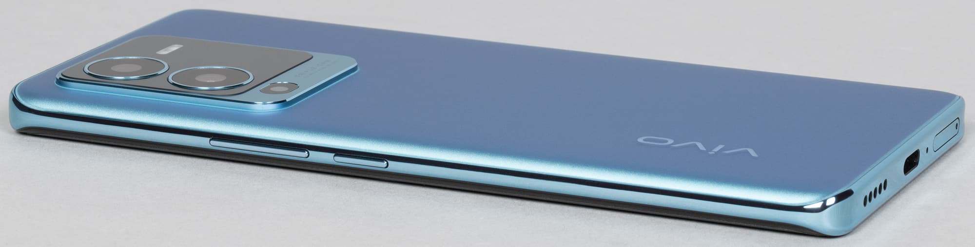 Vivo V25 Pro получил консервативный дизайн флагманских смартфонов, который вошел в моду еще несколько лет назад (например, практически так же выглядел OnePlus 7 Pro 2019 года выпуска). У корпуса сильно заужены боковые грани, а переднее и заднее стекла загнуты по бокам. Смотрится эффектно, но в руке такой смартфон удерживается максимально ненадежно, легко проворачивается. В качестве дополнительного украшения предусмотрено особое фотохромное покрытие задней стеклянной стенки. В зависимости от внешнего освещения оно может менять оттенок от светло-голубого до темно-синего (в случае модификации синего цвета).
