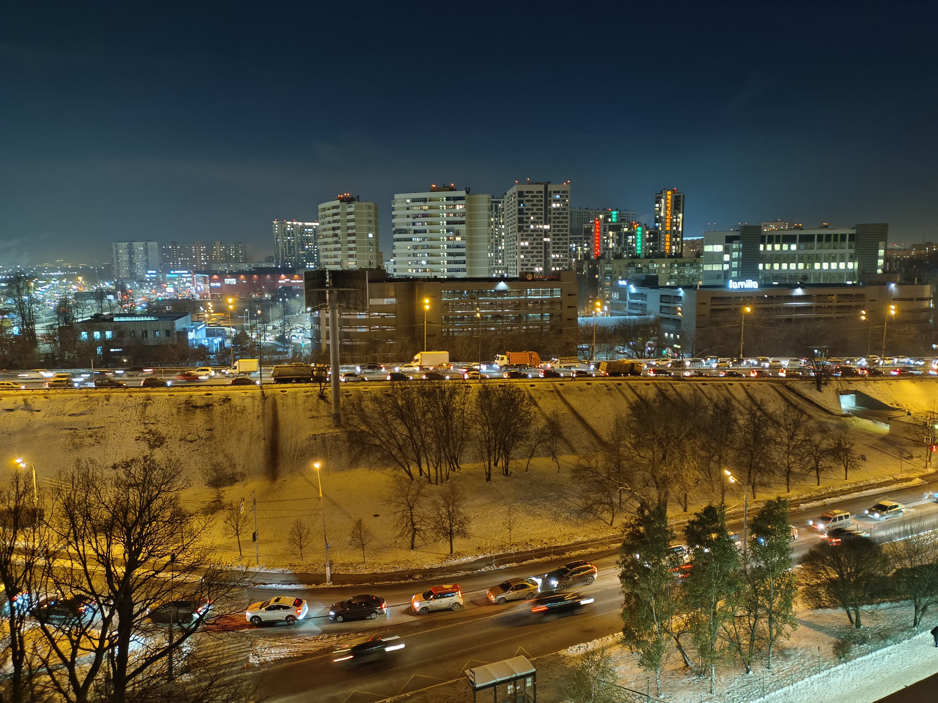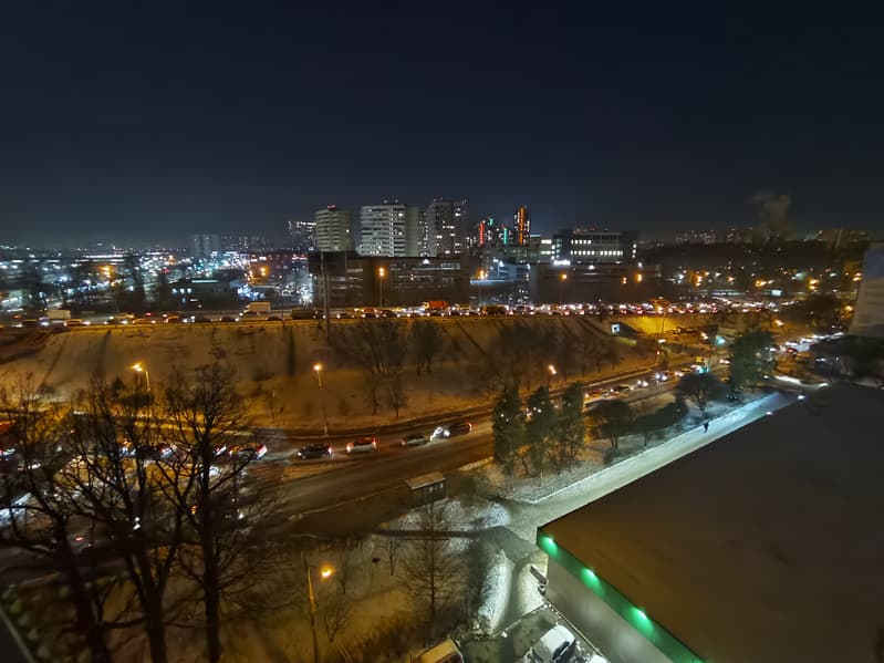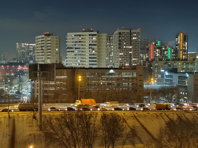 Ночной режим отлично справляется со своей задачей: картинка сочная и контрастная, с приличной резкостью и очень даже неплохой детализацией. Автоматика не передерживает экспозицию, снимки выглядят натуральными, ночными, хотя и явно перенасыщенными. Но в случае с ночным режимом это ничего не портит. Широкоугольная камера в темноте работает совсем слабо, результат плохо выглядит даже в качестве миниатюры. А вот двукратный зум, опять же, обеспечивает вполне приемлемое качество и всё еще дает некоторый выигрыш в детализации.