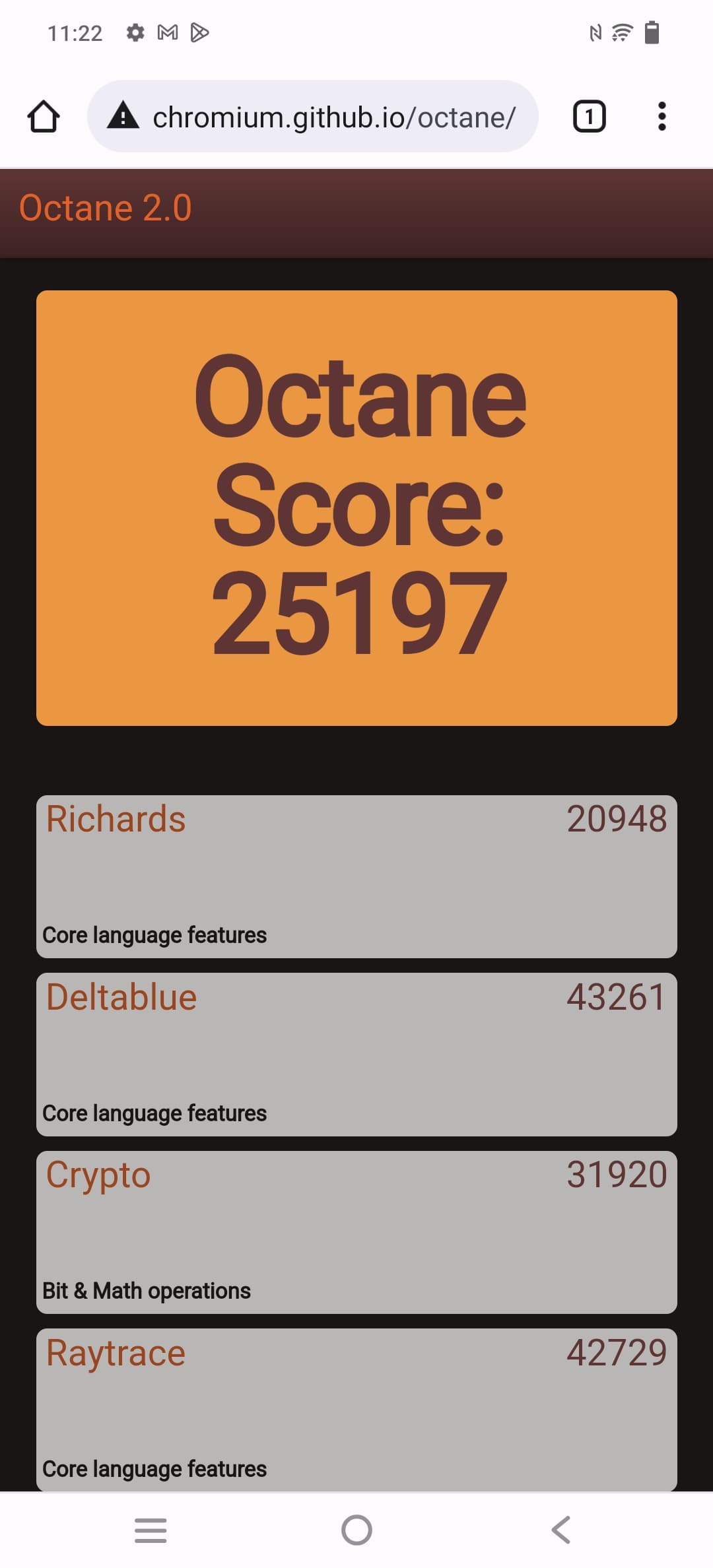 | Google Octane 2 (больше — лучше) | 25197 | 30849 | 36245 | 31919 | 7257 |