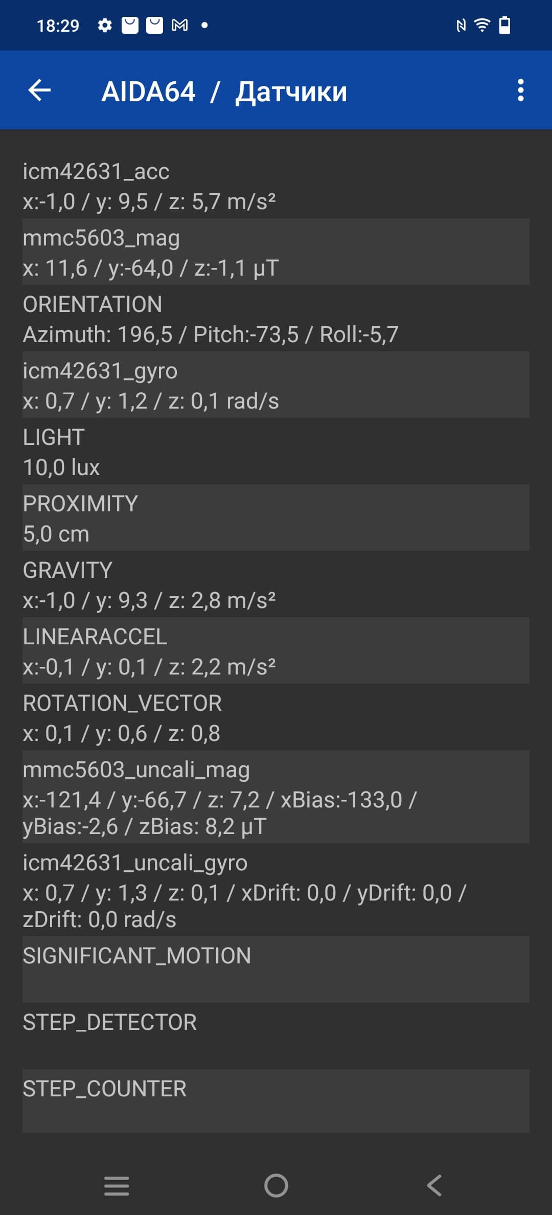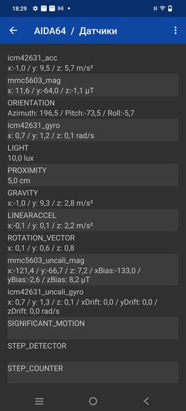 - Датчики приближения и освещения, магнитного поля, акселерометр, гироскоп