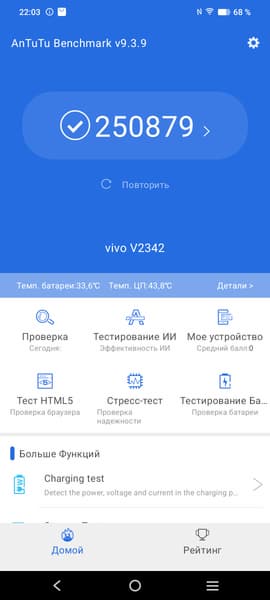 | AnTuTu (v9.x) (больше — лучше) | 250879 | 576685 | 546957 | 387428 | 669583 |
