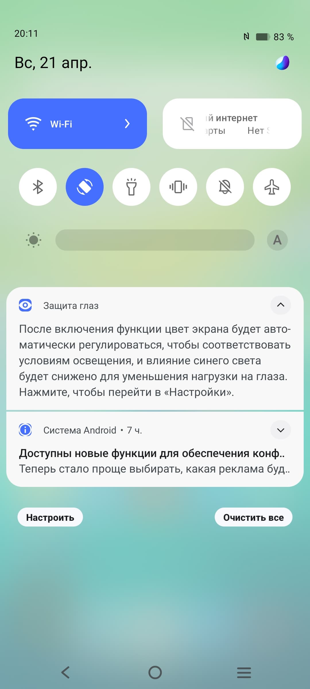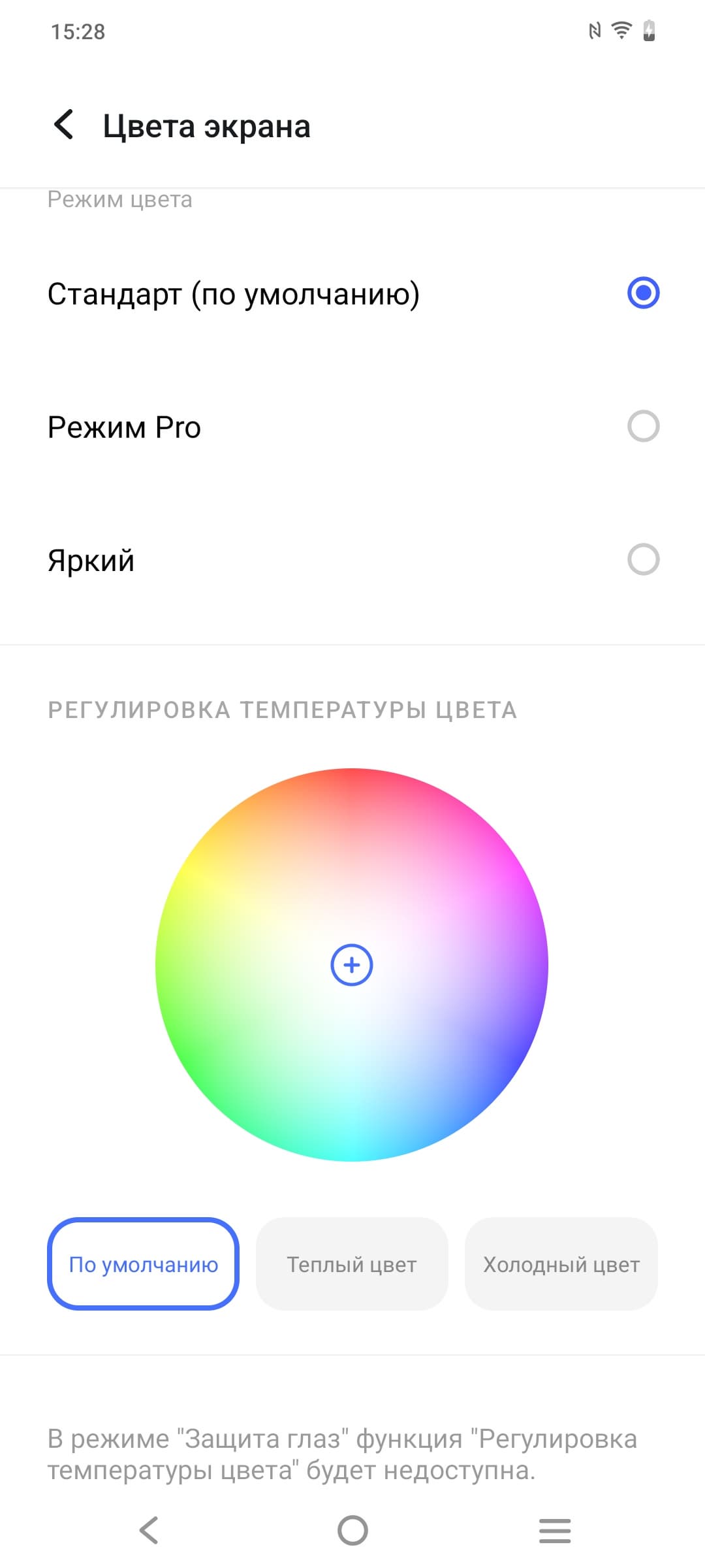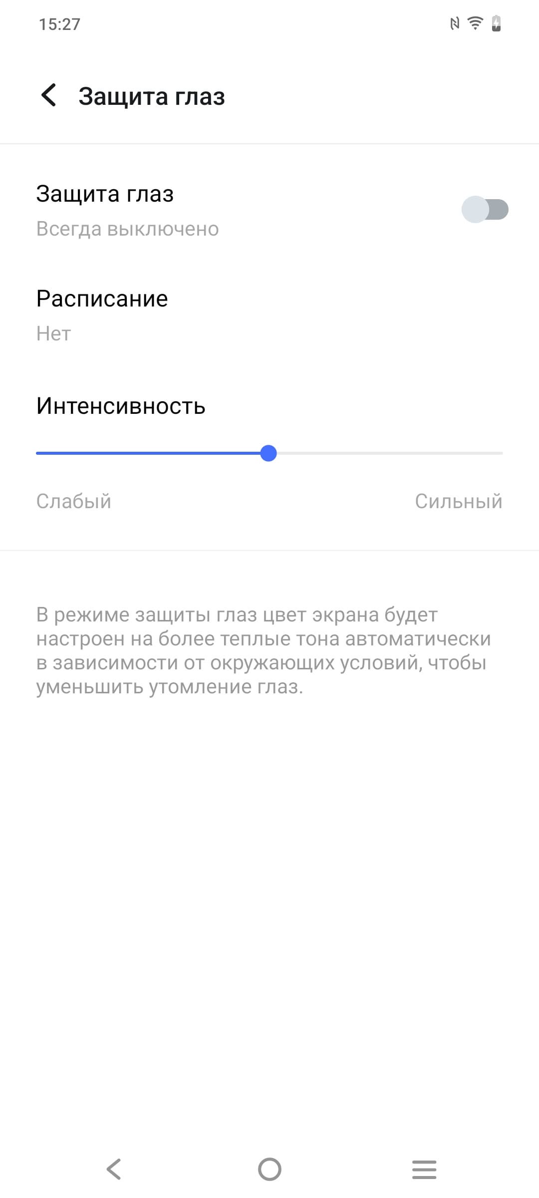 Разумеется, присутствует настройка (Защита глаз), позволяющая снизить интенсивность синей компоненты: