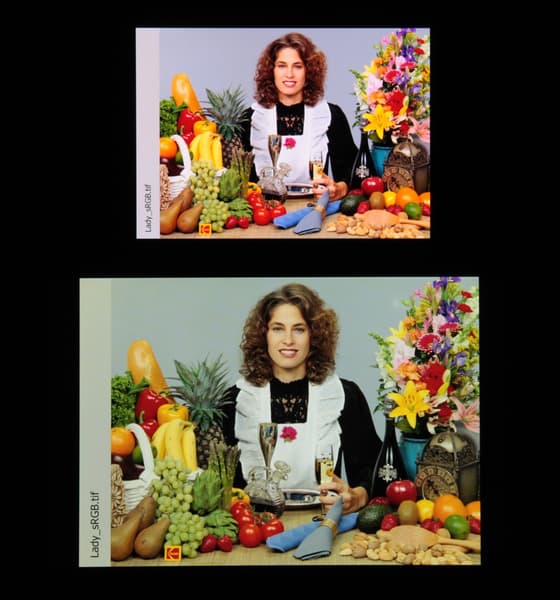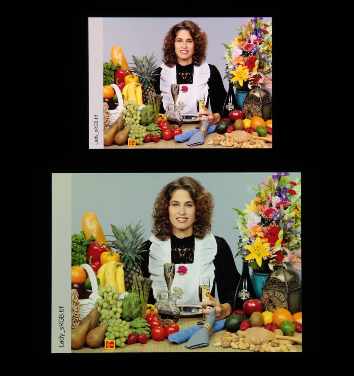 Отметим, что на экранах с уширенным цветовым охватом (без соответствующей коррекции) цвета́ обычных изображений, оптимизированных для устройств sRGB, выглядят неестественно насыщенными. Отсюда и рекомендация: в большинстве случаев смотреть кино, фотографии и всё естественное лучше при выборе профиля Режим Pro.