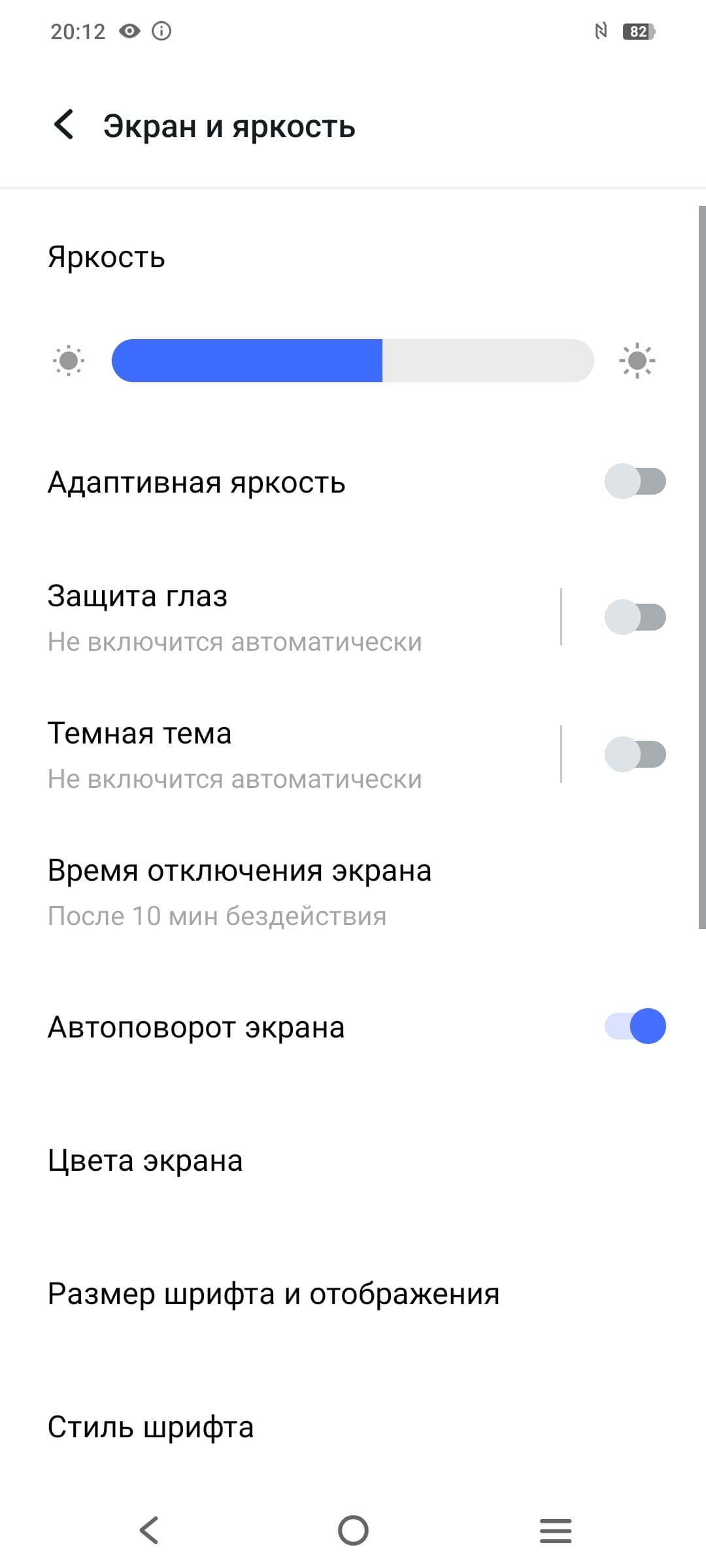 При ручном управлении яркостью и при выводе белого поля во весь экран максимальное значение яркости составило примерно 500 кд/м² в обычных условиях, на очень ярком свету оно может повышаться до 1140 кд/м². Максимальная яркость очень высокая. В данном случае чем меньше площадь белого на экране, тем он светлее, то есть фактическая максимальная яркость белых участков будет почти всегда еще выше. В итоге, учитывая отличные антибликовые свойства, читаемость днем на солнце, должна быть на хорошем уровне, а темная тема не только экономит заряд аккумулятора, но способствует лучшей разборчивости информации на экране в условиях высокой освещенности. Минимальное значение яркости при ручном управлении — 2 кд/м², то есть пониженный уровень яркости без проблем позволяет использовать устройство даже в полной темноте. Есть автоматическая регулировка яркости по датчику освещенности (он расположен под экраном близко к верхнему краю правее центра по горизонтали). В автоматическом режиме при изменении внешних условий освещенности яркость экрана как повышается, так и понижается. Работа этой функции зависит от положения ползунка регулировки яркости: им пользователь может попытаться выставить желаемый уровень яркости в текущих условиях. Если оставить всё по умолчанию, то в полной темноте функция автояркости уменьшает яркость до 7 кд/м² (темновато), в условиях освещенного искусственным светом офиса (примерно 550 лк) устанавливает на 90 кд/м² (сойдет), а условно под прямыми лучами солнца повышает до 1140 кд/м² (до максимума, так и нужно). Результат нас не совсем устроил, поэтому в полной темноте мы чуть увеличили яркость, получив в итоге для трех условий, указанных выше, следующие значения: 16, 100 и 1140 кд/м² (идеальное сочетание). Получается, что функция автоподстройки яркости работает адекватно и позволяет пользователю настраивать свою работу под индивидуальные требования.