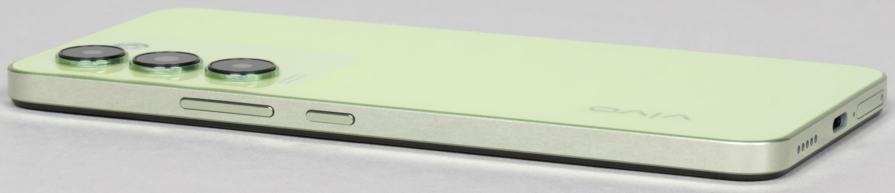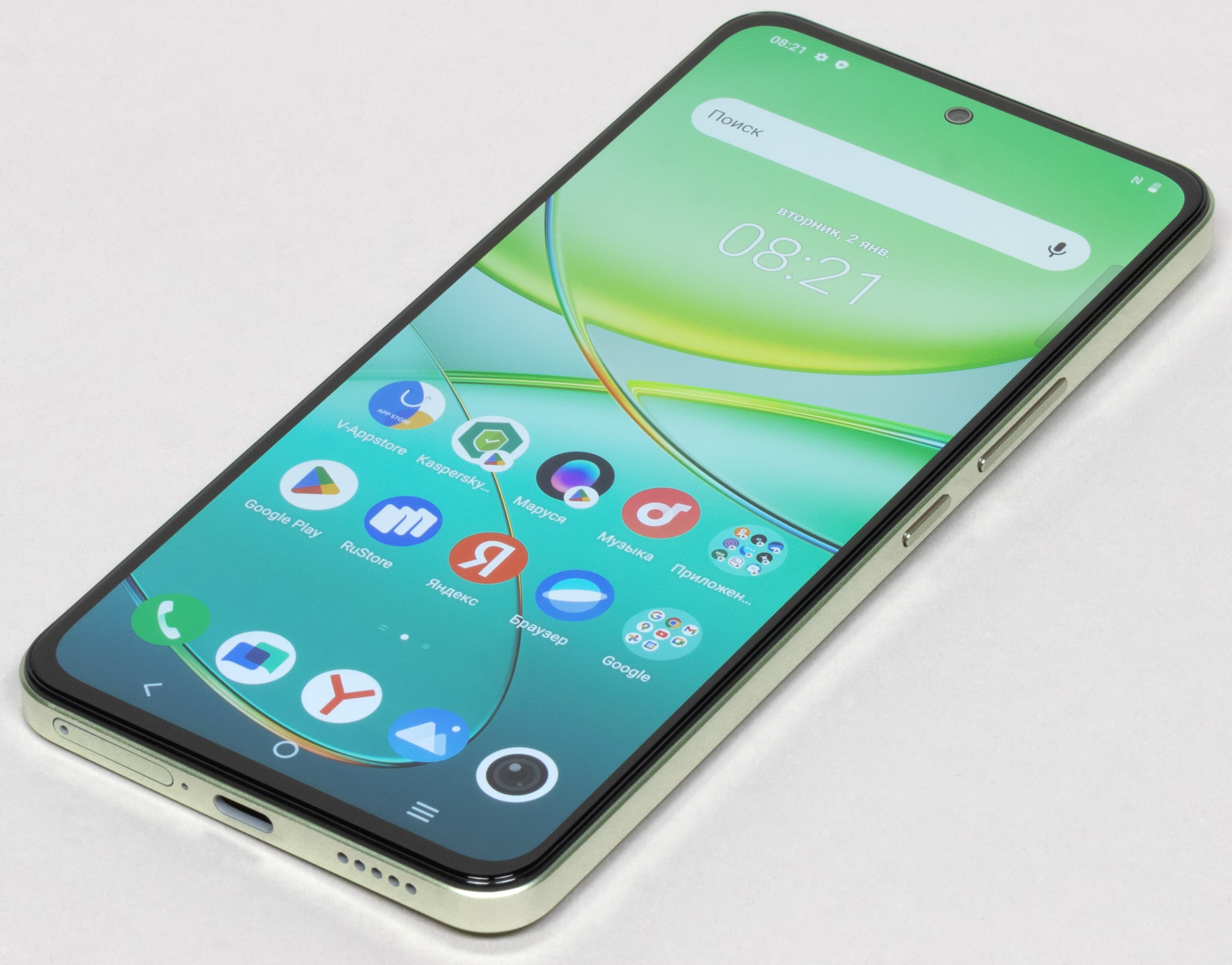 Дизайн у Vivo V30 Lite самый современный: передняя и задняя панели и боковые грани плоские, без зауженностей и обтекаемых форм, переходы между гранями отчетливые. За счет широкой боковой рамки аппарат вполне практичен и хорошо удерживается в ладони. Масса менее 200 граммов также комфортна для размещения смартфона в карманах одежды.
