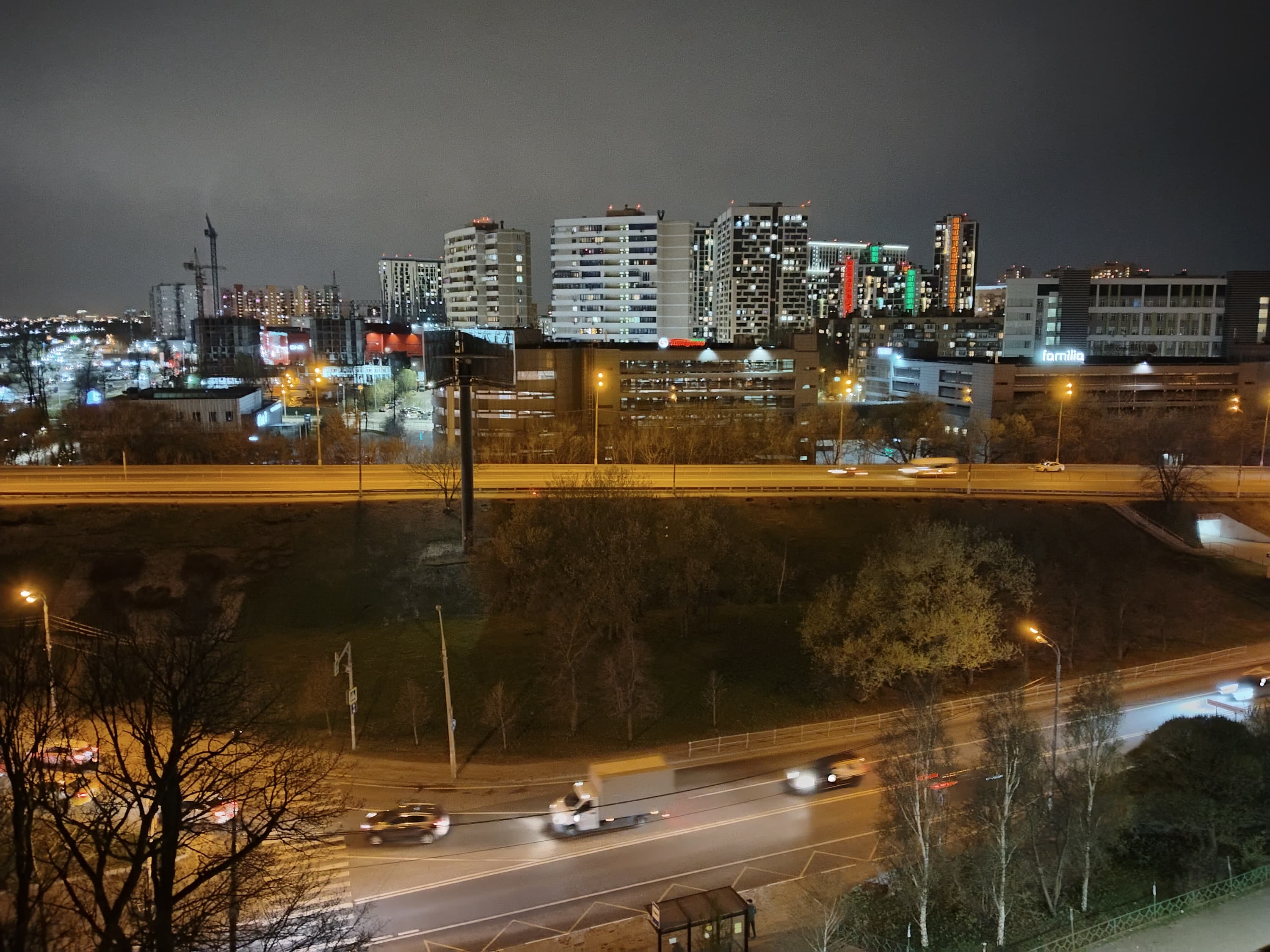 Для ночных снимков возможностей сенсора уже недостаточно, детализация значительно падает и появляются заметные шумы. Однако программа обработки не пытается уничтожить шумы вместе с деталями «в ноль», получаемый результат можно назвать вполне приемлемым компромиссом, а экспозиция у таких фотографий оптимальная. Немного уменьшить снимок в редакторе — и он будет смотреться очень хорошо.