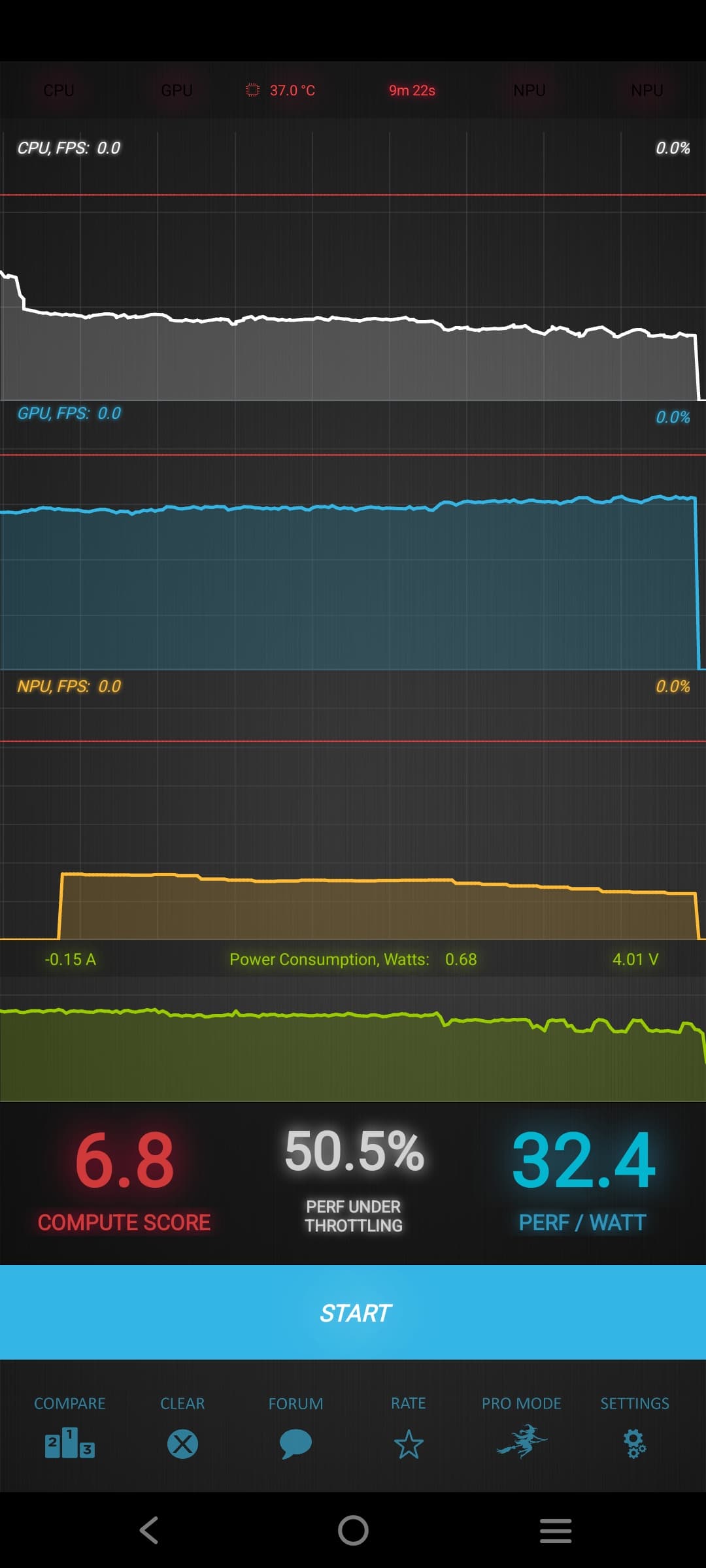 Тест на снижение производительности при нагреве мы проводим с помощью программы Burnout Benchmark, которая позволяет нагружать CPU, GPU и NPU: