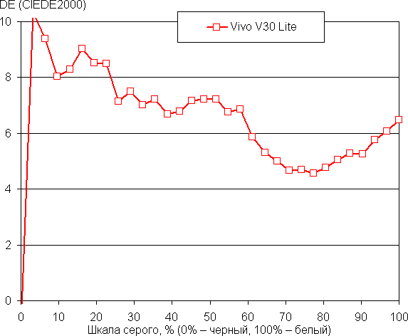 (Самые темные области шкалы серого в большинстве случаев можно не учитывать, так как там баланс цветов не имеет большого значения, да и погрешность измерений цветовых характеристик на низкой яркости большая.)
