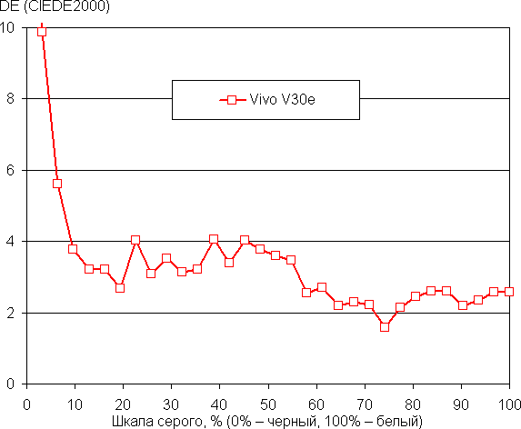 (Самые темные области шкалы серого в большинстве случаев можно не учитывать, так как там баланс цветов не имеет большого значения, да и погрешность измерений цветовых характеристик на низкой яркости большая.)