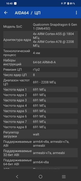 - SoC Qualcomm SM6450 Snapdragon 6 Gen1, 8 процессорных ядер (4×Cortex-A78 @2,2 ГГц + 4×Cortex-A55 @1,8 ГГц)