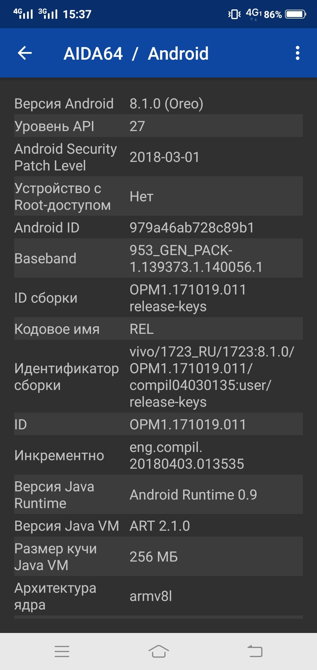 Несъемная аккумуляторная батарея, установленная в Vivo V9, имеет емкость в 3260 мА·ч. Это не так мало, но и не очень много. Однако даже с такой батареей герой обзора демонстрирует впечатляющий уровень автономности во всех специфических сценариях работы. В реальной же жизни аппарат ведет себя так же, как большинство современных смартфонов: уверенно доживает до вечерней зарядки, но на большее рассчитывать не приходится.