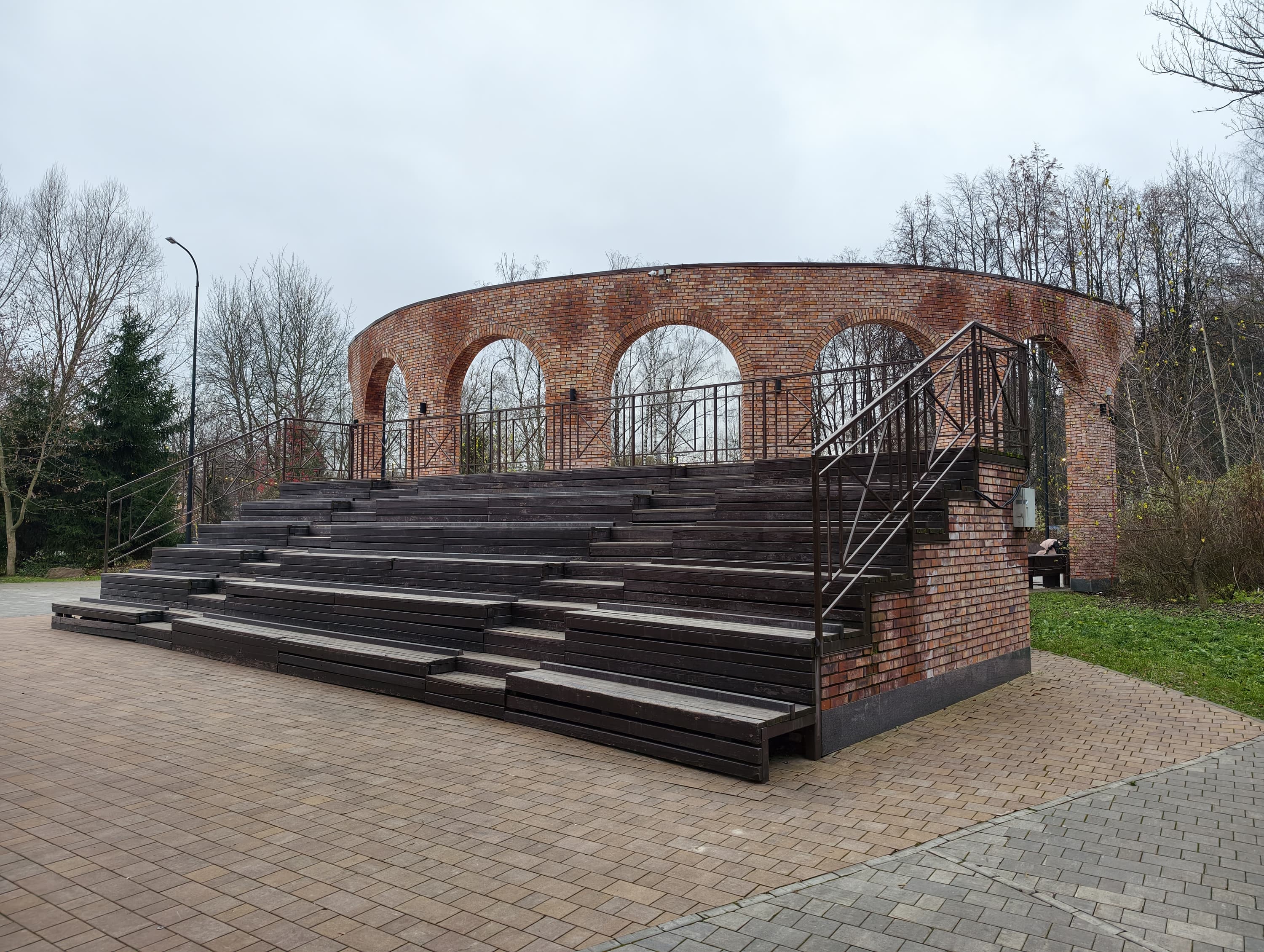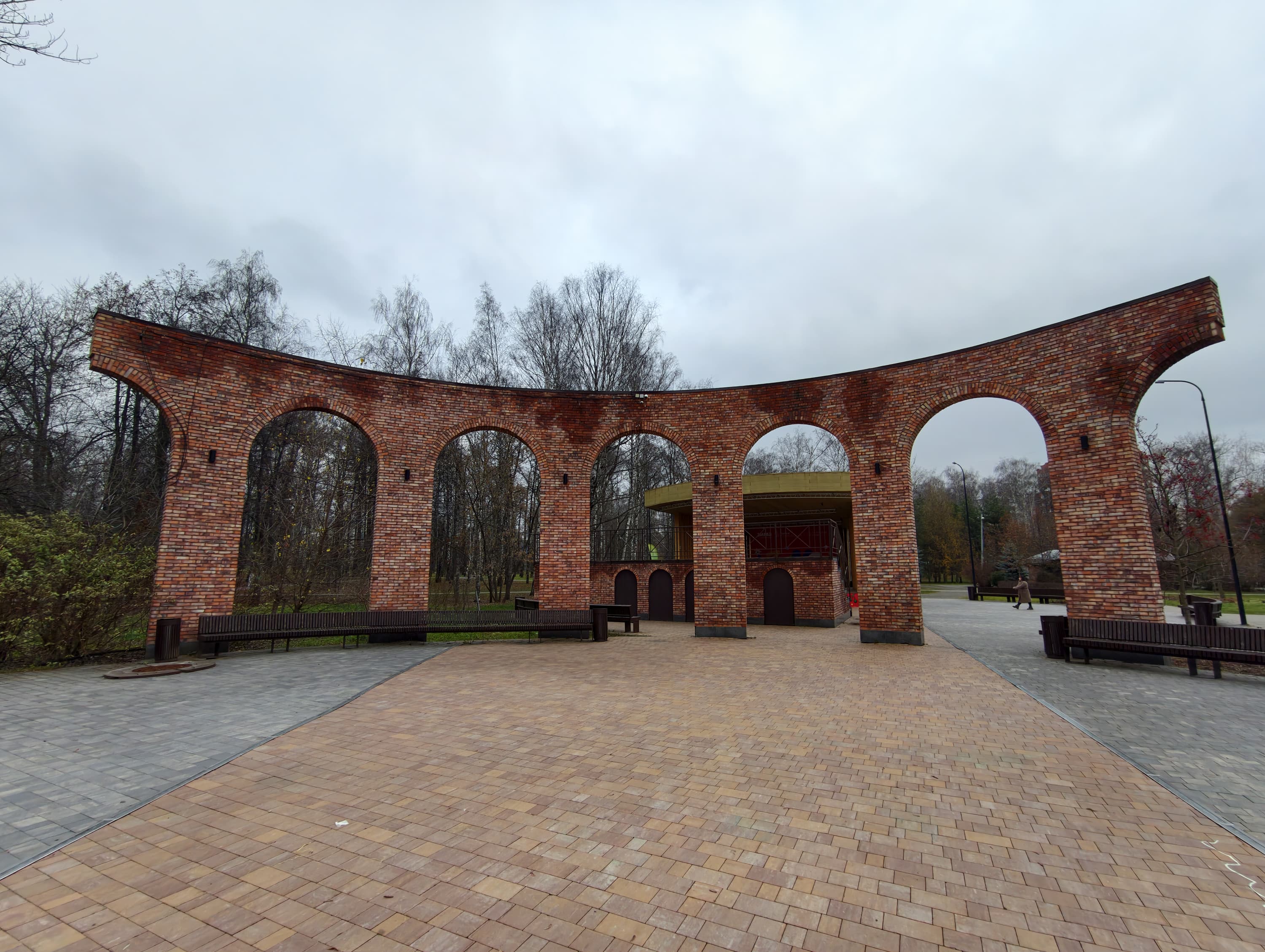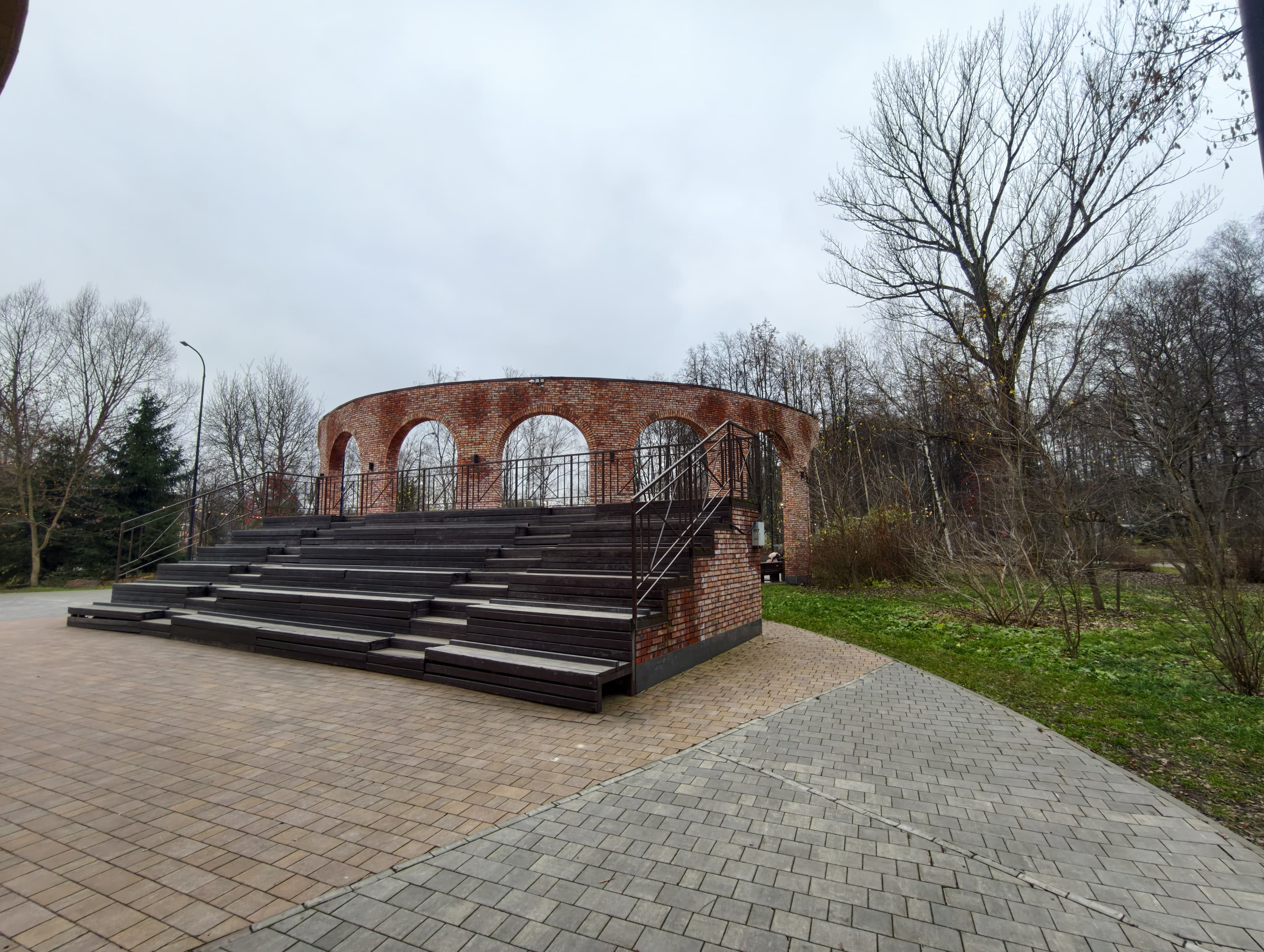 Третья камера, для широкоугольной съемки, выдает светлые снимки со всё еще приличной детализацией и очень хорошо исправленными геометрическими искажениями, но падение резкости к краям кадра всё равно значительное, и равноценной парой к основной камере она не является. Если же не требовать чересчур многого, то меркам смартфонов широкоугольная камера здесь очень неплохая.