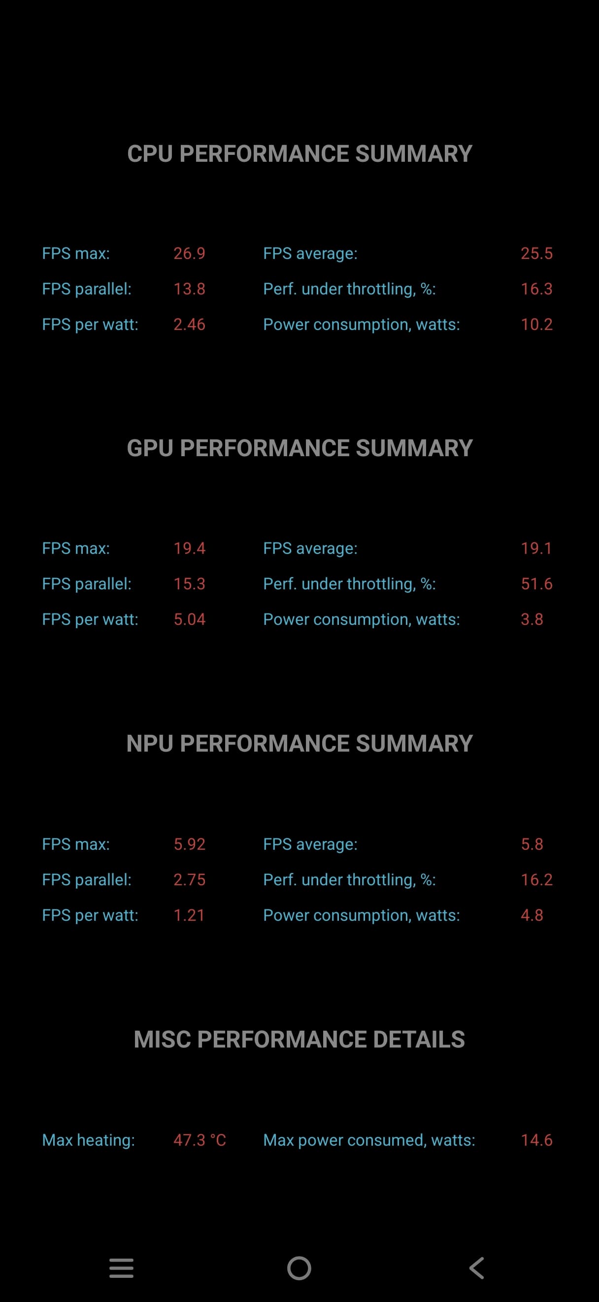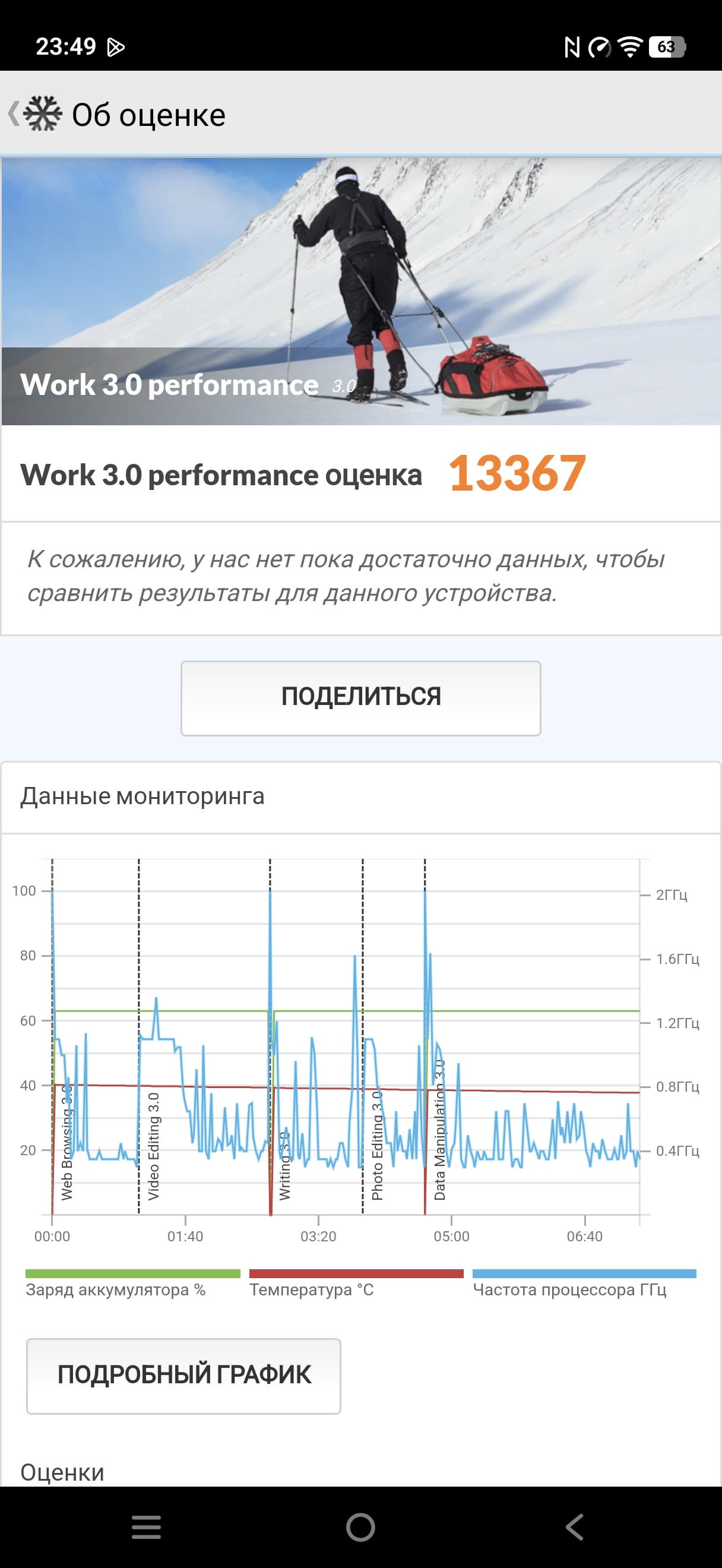 Тест на снижение производительности при нагреве мы проводим с помощью программы Burnout Benchmark, которая позволяет нагружать CPU, GPU и NPU. Уровень тротлинга при нагрузке на GPU (то бишь в играх) не самый высокий.