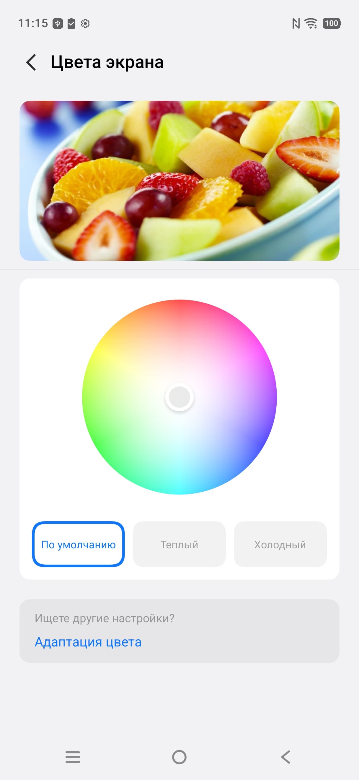 Дополнительно в этом устройстве есть возможность скорректировать цветовой баланс с помощью выбора профиля цветовой температуры или регулировки оттенка на цветовом круге.
