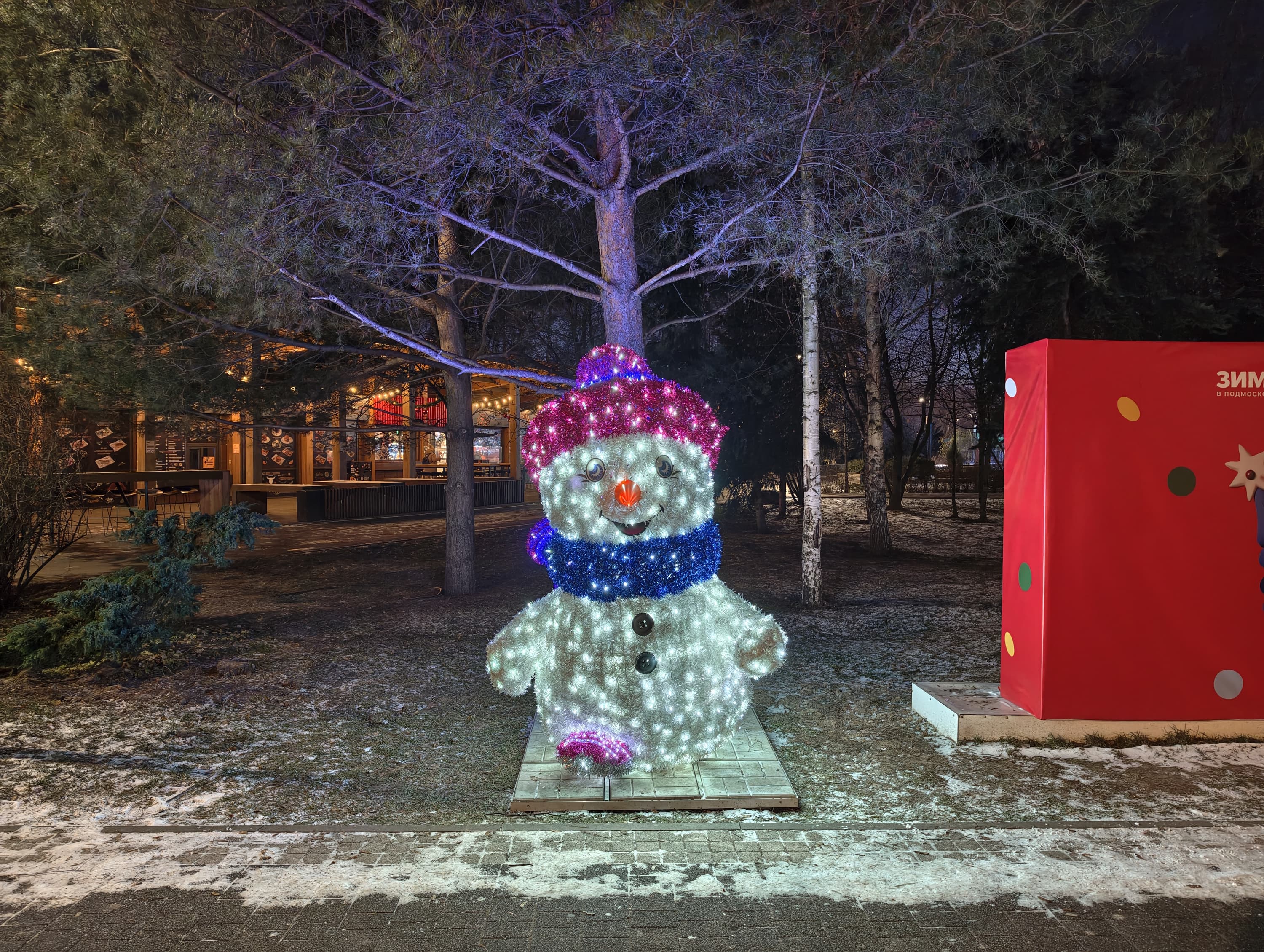 Возможности сенсора и программной обработки лучше всего видны по ночным снимкам, и здесь Vivo X300 приятно впечатляет: по-прежнему отличная четкость, высокая детализация, очень аккуратное подавление шумов, картинка ночная, подсвеченные элементы смотрятся красиво.