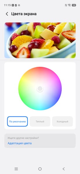Присутствует функция Адаптация цвета, которая, если ее включить, подстраивает цветовой баланс под условия окружающей среды. Мы включили эту функцию и проверили, как она работает (профиль Профессиональный):