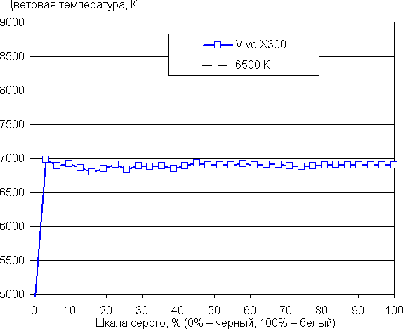 (Самые темные области шкалы серого в большинстве случаев можно не учитывать, так как там баланс цветов не имеет большого значения, да и погрешность измерений цветовых характеристик на низкой яркости большая.)