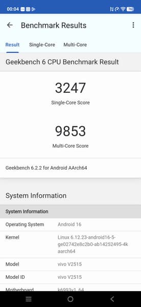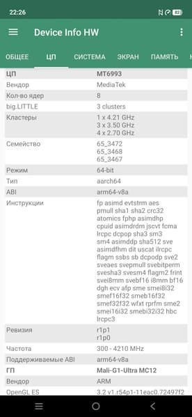 - SoC Mediatek Dimensity 9500, 8 процессорных ядер (1×C1-Ultra @4,21 ГГц + 3×C1-Premium @3,5 ГГц + 4×C1-Pro @2,7 ГГц)