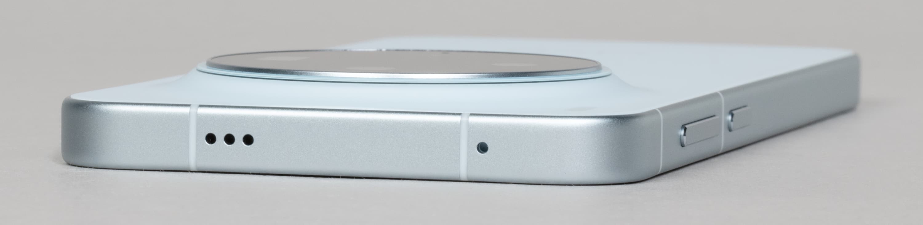 Верхний торец содержит отверстия для микрофона и динамика. Также у смартфона есть ИК-излучатель, но он располагается в блоке с камерами. За стереозвучание отвечают два торцевых динамика, оно качественное, звук громкий, насыщенный.
