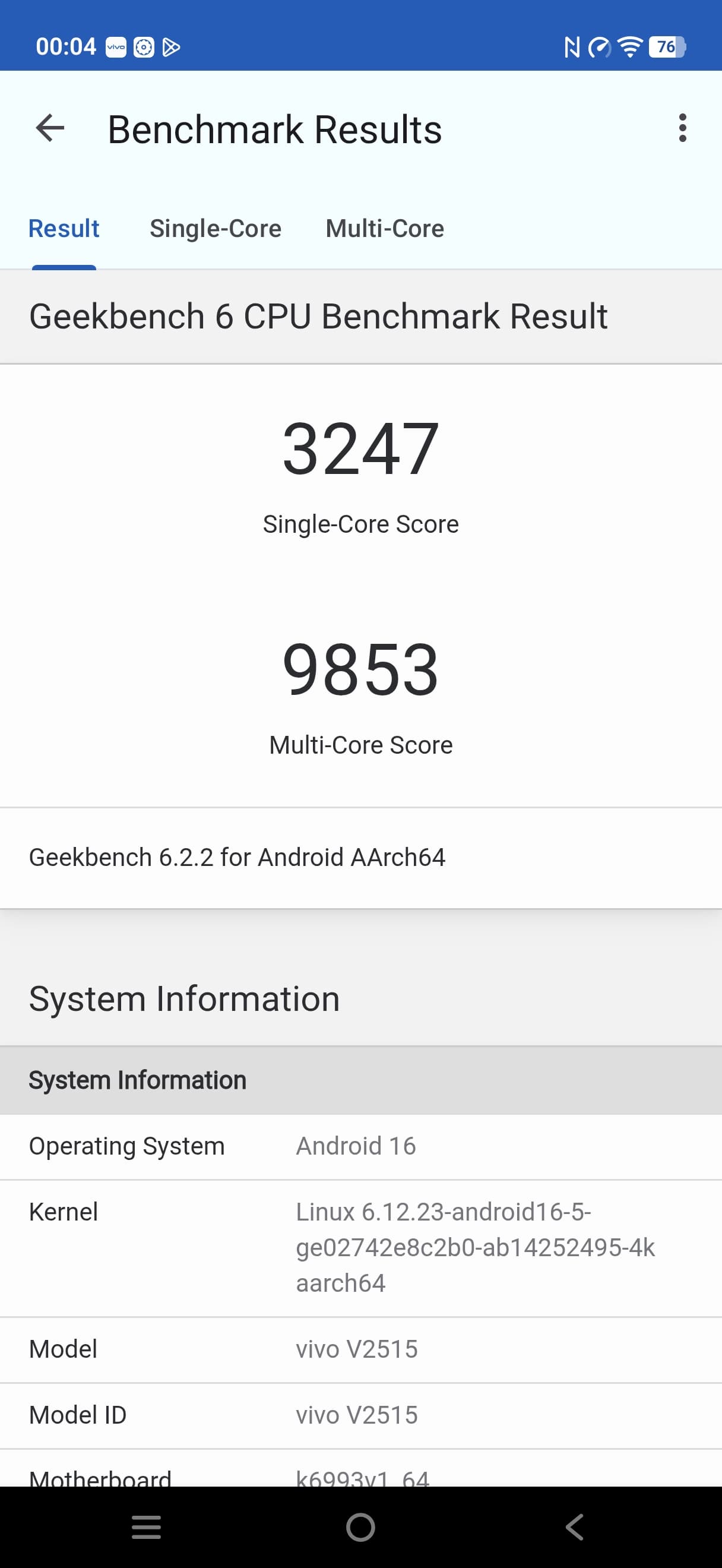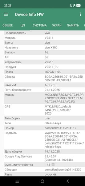 Основные характеристики Vivo X300 (модель V2515)