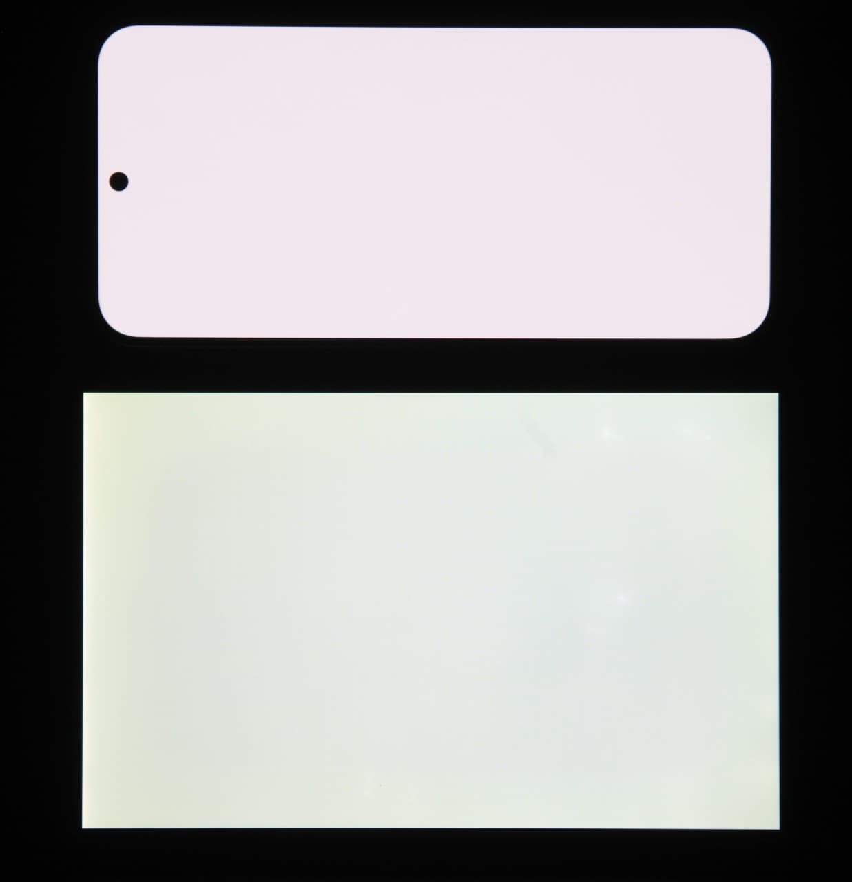 Экран характеризуется великолепными углами обзора. Яркость под углом у обоих экранов заметно уменьшается (если сравнивать с Nexus 7), но в случае смартфона падение яркости выражено гораздо меньше. В итоге, даже если установить формально одинаковую яркость, то экран этого смартфона визуально выглядит гораздо более ярким (в сравнении с ЖК-экранами), так как на экран мобильного устройства часто приходится смотреть как минимум под небольшим углом. Правда, у смартфона белый цвет при отклонении на большие углы приобретает едва заметный сине-зеленый оттенок, но черный цвет остается просто черным под любыми углами. Он настолько черный, что параметр контрастности в данном случае неприменим. Для сравнения приведем фотографии (вывод в приложении Альбомы), на которых на экраны смартфона и второго участника сравнения выведены одинаковые изображения, при этом яркость экранов изначально установлена примерно на 200 кд/м², а цветовой баланс на фотоаппарате принудительно переключен на 6500 К.