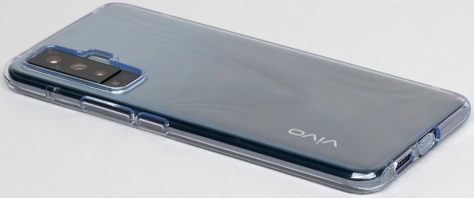 Дизайнерский шик двухъярусной площадки с камерами достался vivo X50 от версии Pro. Площадка здесь, правда, поуже и поменьше, не двухцветная, в целом выглядит не так приметно — сразу понятно, что не «Pro».