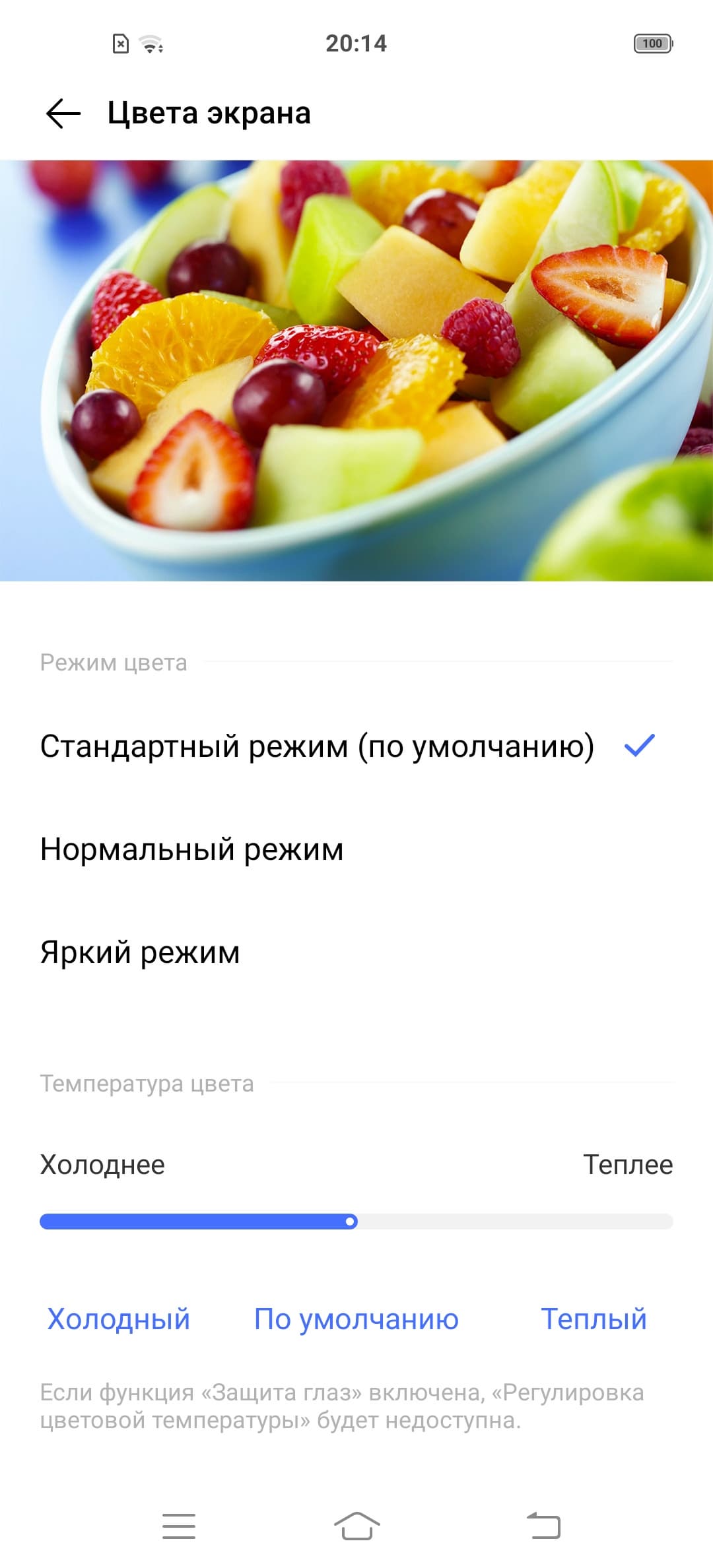 Фотография выше получена после выбора профиля Нормальный режим в настройках экрана, всего их три.