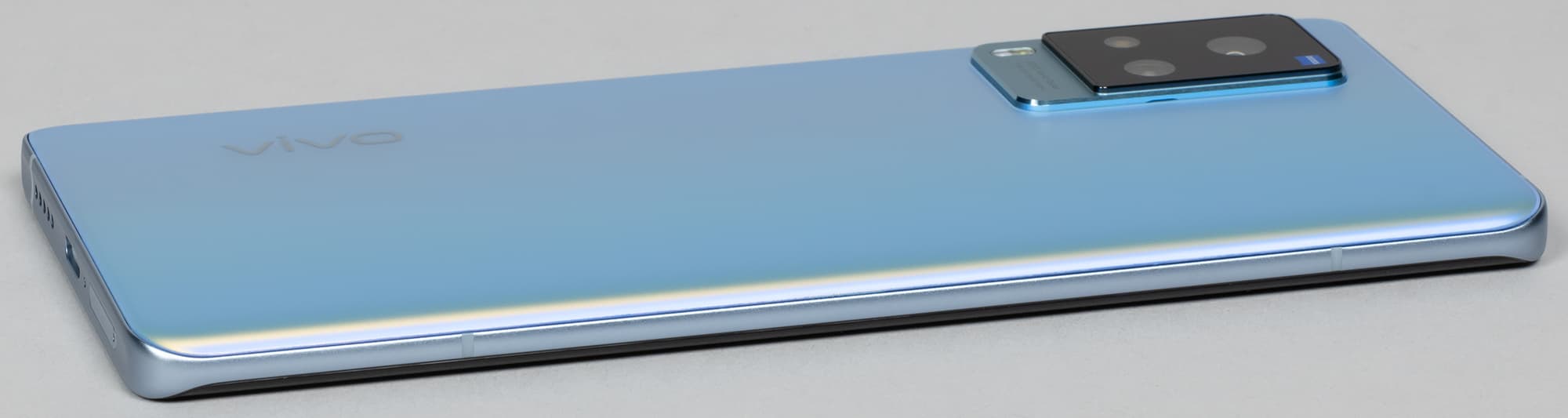 Не считая скользких обводов и зауженной неудобной для удержания рамки, по материалам у корпуса Vivo X60 Pro все хорошо: тыльная сторона выполнена из закаленного стекла Gorilla Glass 6, а переднее стекло, по информации самого разработчика, имеет наименование «Schott Xensation UP». Соединяет стекла между собой по всему периметру алюминиевая рамка, красиво расширяющаяся к верхнему и нижнему торцам.
