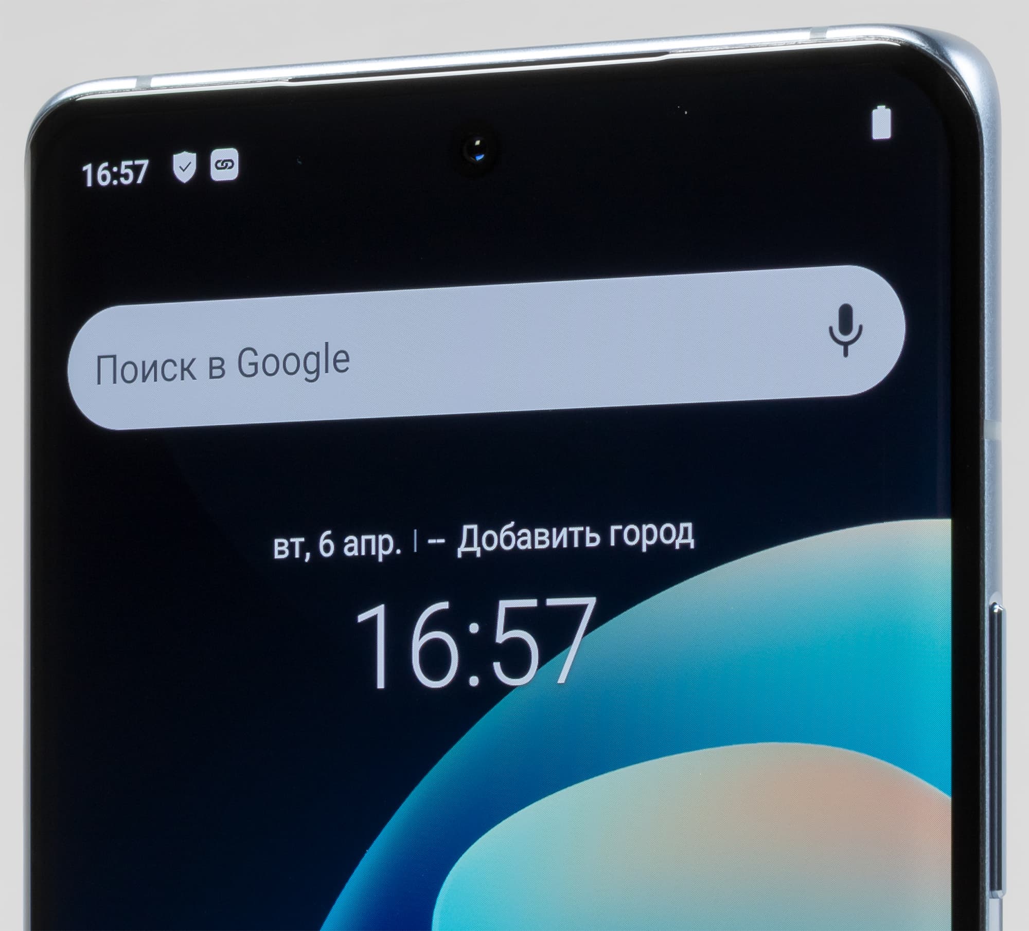 Фронтальную камеру установили за маленьким вырезом прямо в матрице экрана. Непонятно, правда, зачем ее размещают прямо посередине, а не в углу. Ведь в углу эта дырка в экране не так бросается в глаза, как по центру. В темной теме она, конечно, не так видна, но все же...