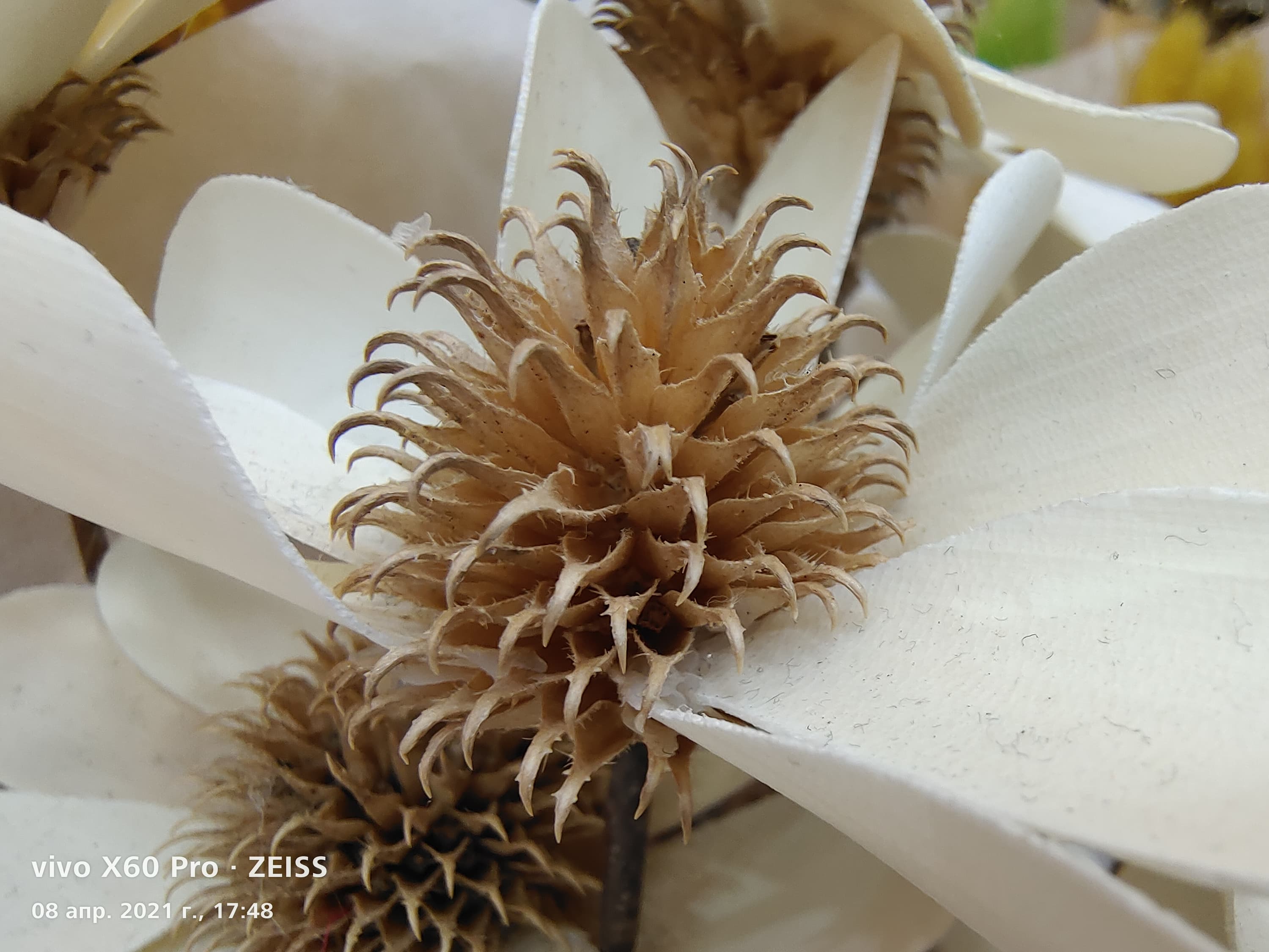 Отдельного объектива для съемки в режиме макро нет. На коротком фокусном расстоянии ИИ смартфона самостоятельно в автоматическом режиме распознаёт соответствующую сцену и переключается на широкоугольный объектив. В этом случае, конечно же, не все объекты полностью оказывается в зоне резкости, но все равно качество снимков куда лучше, чем у модных современных отдельных «макромодулей» с разрешением 2 Мп. Здесь некоторые фотографии действительно не стыдно продемонстрировать друзьям.