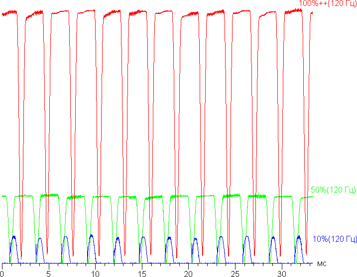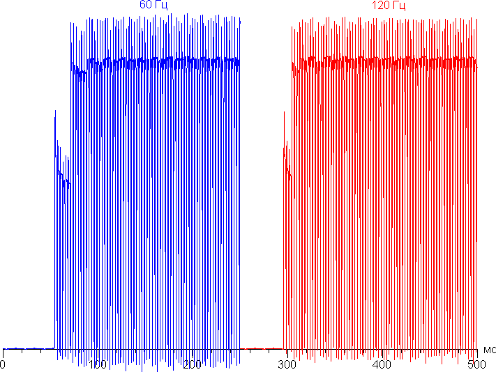 В режиме 120 Гц плавность прокрутки списков меню заметно повышается. Посмотрим, изменится ли при этом характер модуляции: