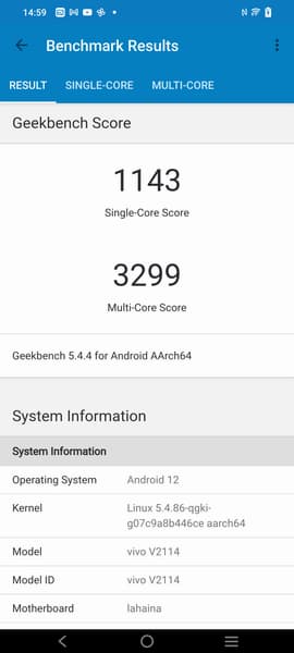 | GeekBench 5 (больше — лучше) | 1143/3299 | 1042/3391 | 1017/2966 | 1099/2953 | 813/2314 |