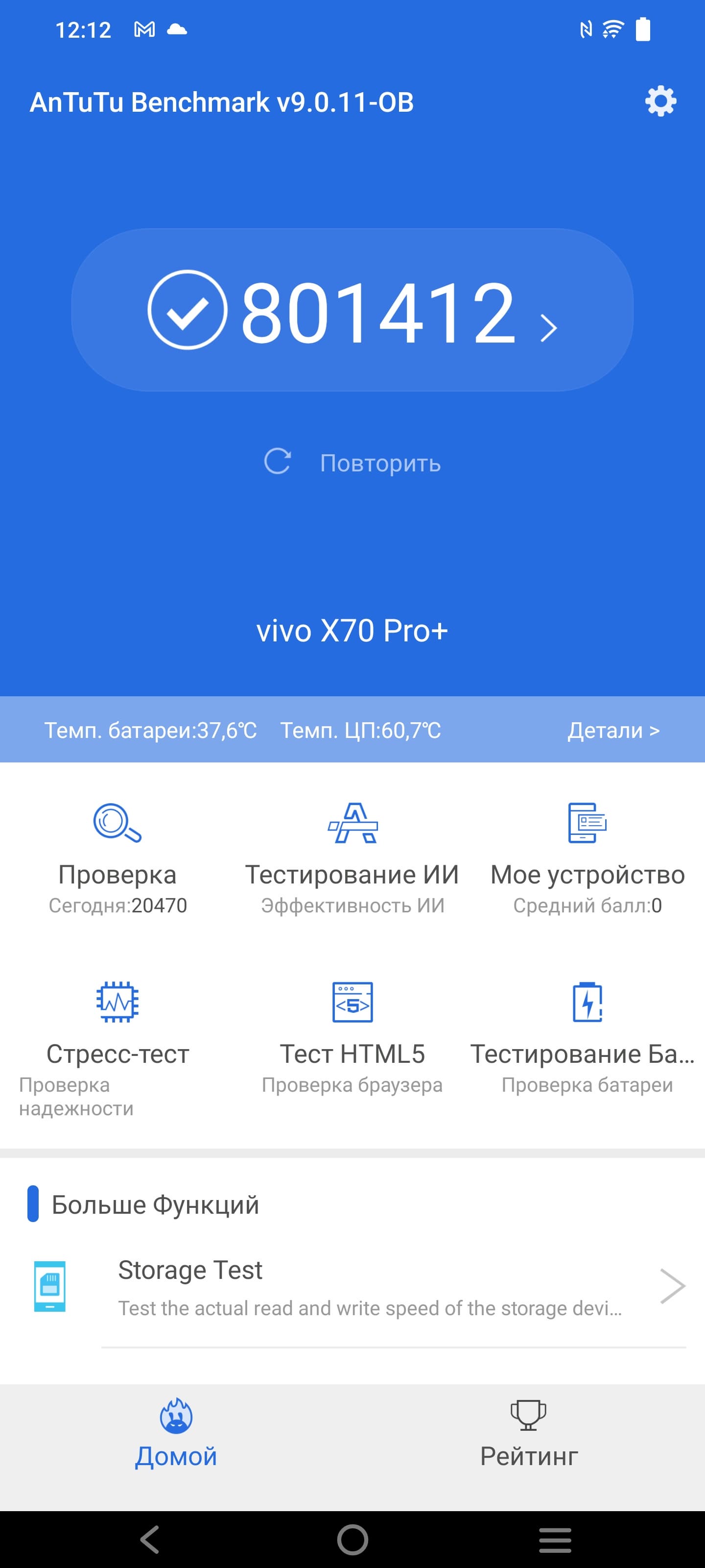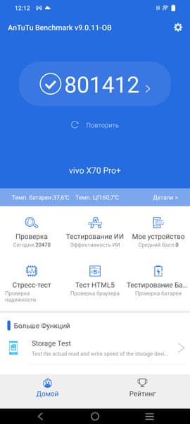 Смартфон Vivo X70 Pro+ получил батарею со стандартным, не самым большим объемом, но автономность аппарат демонстрирует вполне удовлетворительную. Отчасти это вызвано существенным тротлингом процессора под нагрузкой, что уменьшает реальное потребление весьма «жрущей» Snapdragon 888+. И все же в требовательных играх корпус сильно нагревается и заряд утекает быстро.