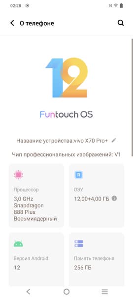 В качестве программной платформы Vivo X70 Pro+ использует последние версии ОС Android 12 и собственной оболочки Funtouch OS 12. Интерфейс претерпел заметные изменения во внешнем виде и структуре по сравнению с 11-й версией. Многое перерисовано, перегруппировано, добавлено еще больше различных анимаций (можно, например, выбирать анимацию при зарядке батареи). Есть отдельный игровой режим, весьма продвинутый. Официальный магазин Google и сервисы Google на месте.