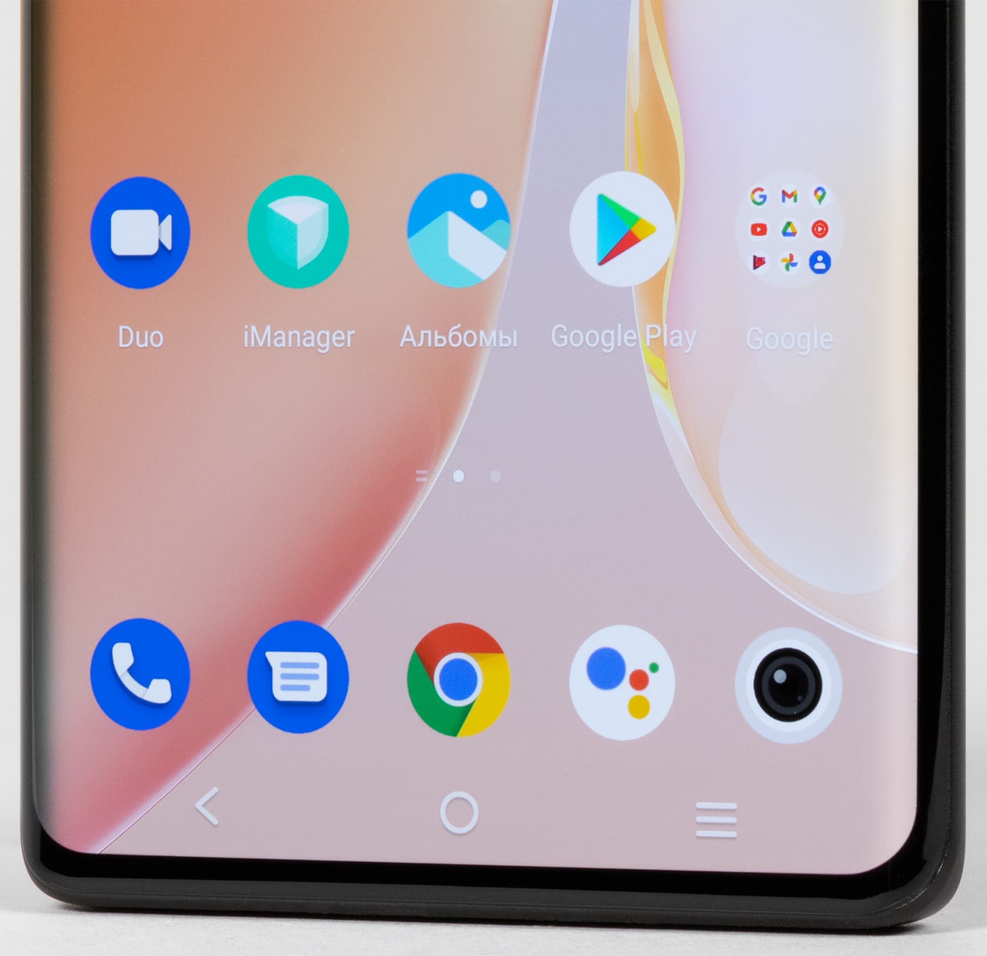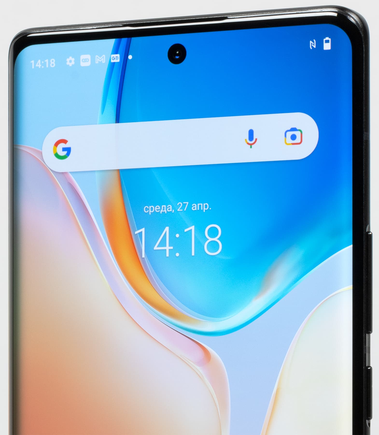 Подведем итоги. Экран имеет очень высокую максимальную яркость (до 930 кд/м²) и обладает отличными антибликовыми свойствами, поэтому устройством можно будет пользоваться вне помещения даже летним солнечным днем. В полной темноте яркость можно понизить до комфортного значения (вплоть до 2,7 кд/м²). Допустимо использовать режим с автоматической подстройкой яркости, работающий адекватно. К достоинствам экрана нужно отнести эффективное олеофобное покрытие, режим с частотой обновления 120 Гц, хороший цветовой баланс и охват sRGB после выбора нужного профиля. Заодно напомним про общие достоинства OLED-экранов: истинный черный цвет (если в экране ничего не отражается), хорошая равномерность белого поля, заметно меньшее, чем у ЖК, падение яркости изображения при взгляде под углом. К недостаткам можно отнести мерцание экрана, обнаруживаемое на низкой яркости. Тем не менее, в целом качество экрана очень высокое. Отдельно отметим, что с точки зрения качества изображения, от загнутых краев только вред, так как эта дизайнерская находка вносит искажения цветового тона и уменьшает яркость на краях картинки, а в условиях внешней освещенности приводит к неизбежным бликам вдоль хотя бы одной длинной стороны экрана.