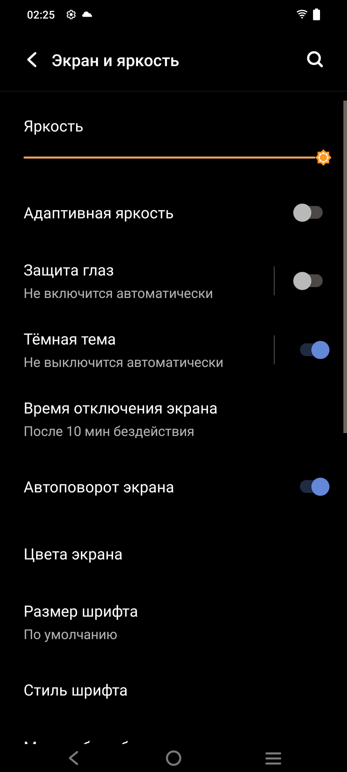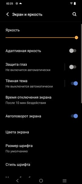 При ручном управлении яркостью и при выводе белого поля во весь экран максимальное значение яркости составило примерно 430 кд/м² в обычных условиях, на очень ярком свету оно повышается до 930 кд/м². Максимальная яркость очень высокая. В данном случае чем меньше площадь белого на экране, тем он светлее, то есть фактическая максимальная яркость белых участков будет почти всегда еще выше. В итоге читаемость экрана днем на солнце должна быть на хорошем уровне. Минимальное значение яркости — 2,7 кд/м², то есть пониженный уровень яркости без проблем позволяет использовать устройство даже в полной темноте. Есть автоматическая регулировка яркости по датчику освещенности (он расположен под экраном близко к верхнему краю правее центра). В автоматическом режиме при изменении внешних условий освещенности яркость экрана как повышается, так и понижается. Работа этой функции зависит от положения ползунка регулировки яркости: им пользователь может попытаться выставить желаемый уровень яркости в текущих условиях. Если оставить все по умолчанию, то в полной темноте функция автояркости уменьшает яркость до 7 кд/м² (темновато), в условиях освещенного искусственным светом офиса (примерно 550 лк) устанавливает на 90 кд/м² (нормально), а условно под прямыми лучами солнца повышает до 930 кд/м² (до максимума, так и нужно). Результат нас не совсем устроил, поэтому в полной темноте мы чуть увеличили яркость, получив в итоге для трех условий, указанных выше, следующие значения: 15, 100 и 930 кд/м² (идеальное сочетание). Получается, что функция автоподстройки яркости работает адекватно и позволяет пользователю настраивать свою работу под индивидуальные требования.