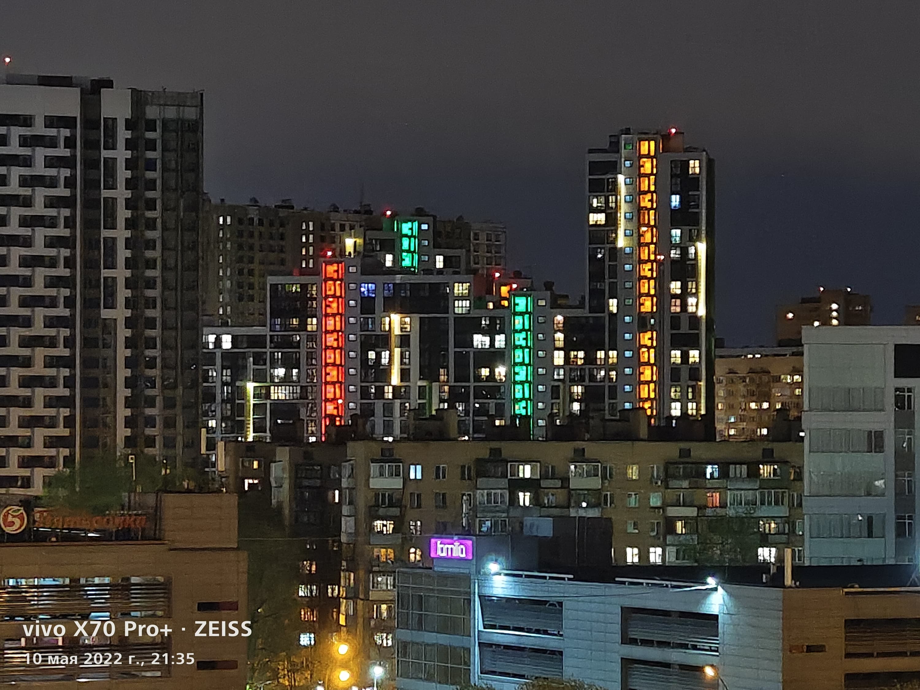 В ночном режиме доступны все 4 модуля. Качество съемки на основную камеру при этом остается максимально высоким, «телевики» несколько сдают, но все еще обеспечивают весьма приемлемую картинку, и только «ширик» сильно теряет в детализации и уже годится, по большому счету, только для миниатюр. Источники света на фото не бликуют, оптика действительно качественная. Снимки выглядят четкими, но не «дорисованными», и нет привычной для дешевых камер задранной экспозиции — настолько, что ночной пейзаж у них начинает выглядеть дневным. Здесь картинка остается естественной и действительно ночной.