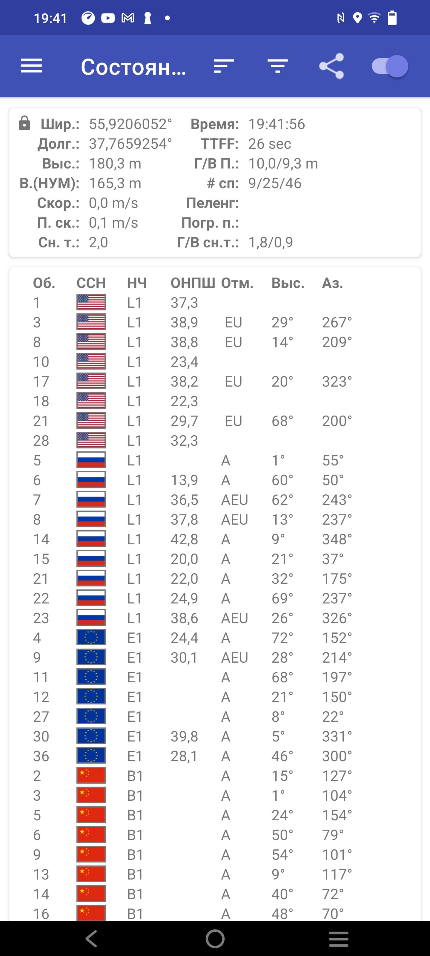 Навигационный модуль работает с GPS (с A-GPS), Глонасс, Beidou, Galileo и QZSS. Первые спутники при холодном старте обнаруживаются быстро, точность позиционирования не вызывает претензий.