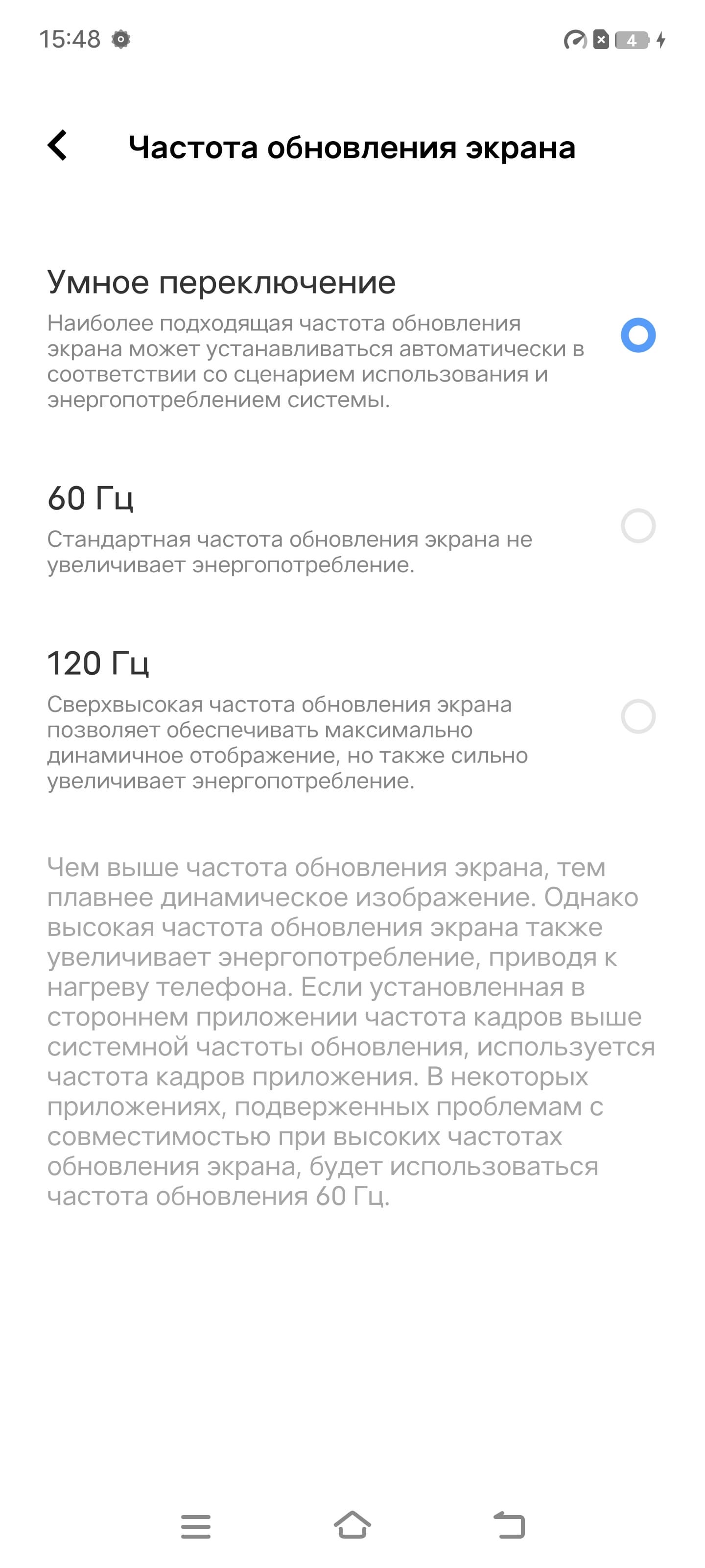 В настройках экрана можно включить режим с повышенной до 120 Гц частотой обновления: