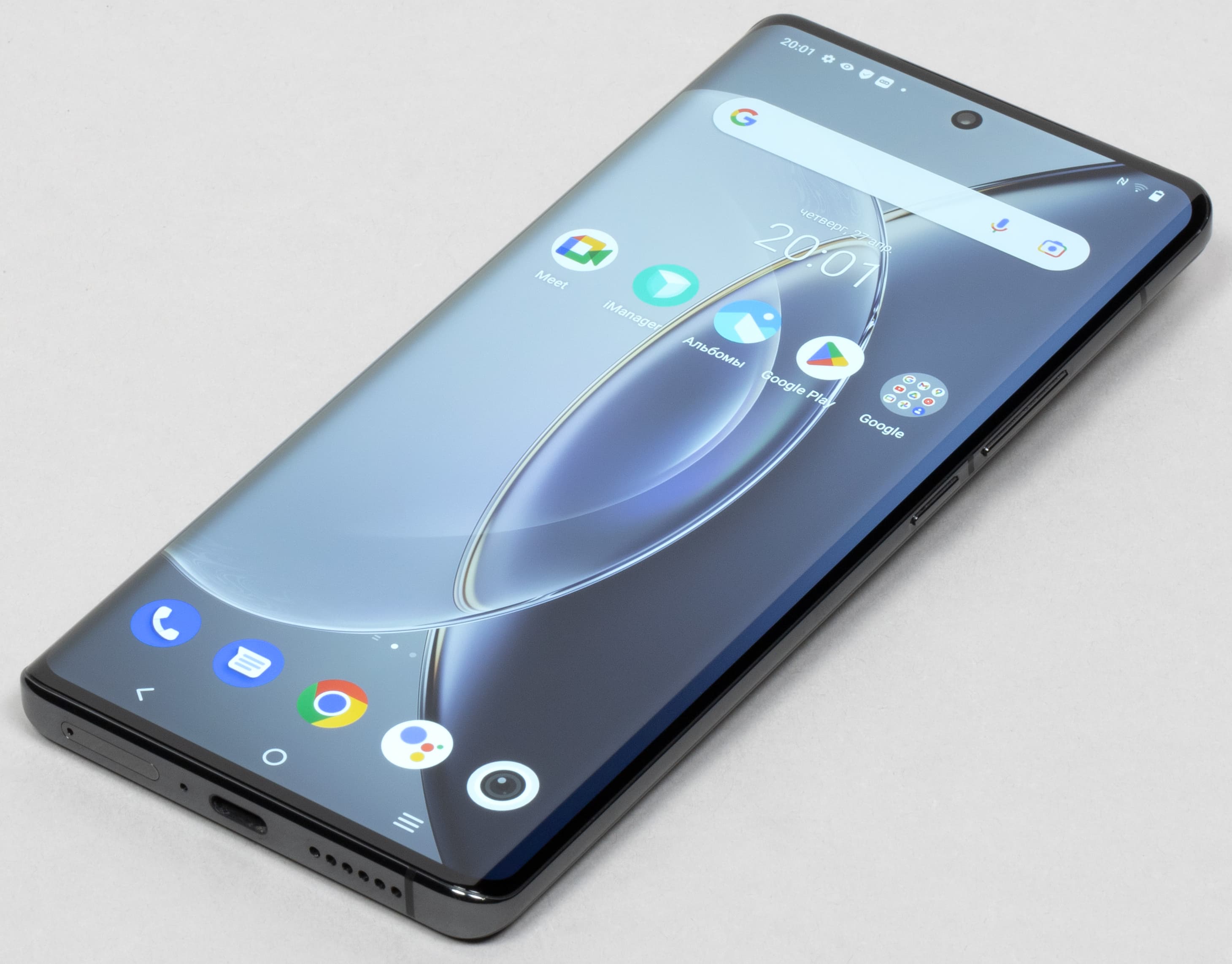 Также на сточенном до плоского состояния торце снизу размещены основной динамик, микрофон и разъем USB Type-C. 3,5-миллиметрового аудиовыхода для проводных наушников не предусмотрели.