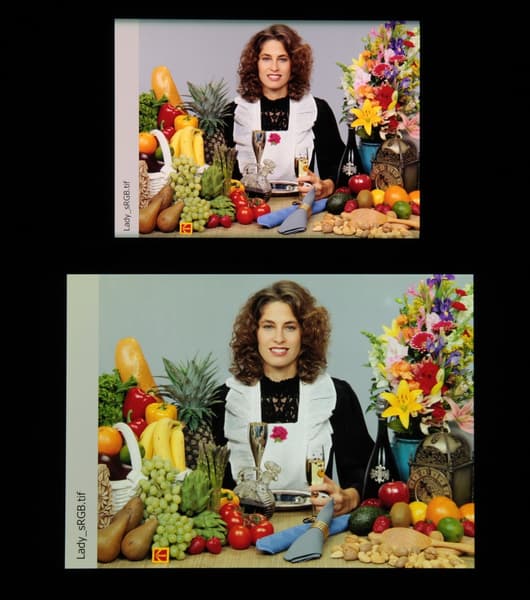 Этот профиль характеризуются хорошим приближением к охвату DCI (см. ниже). При выборе профиля Яркий насыщенность цветов еще выше: