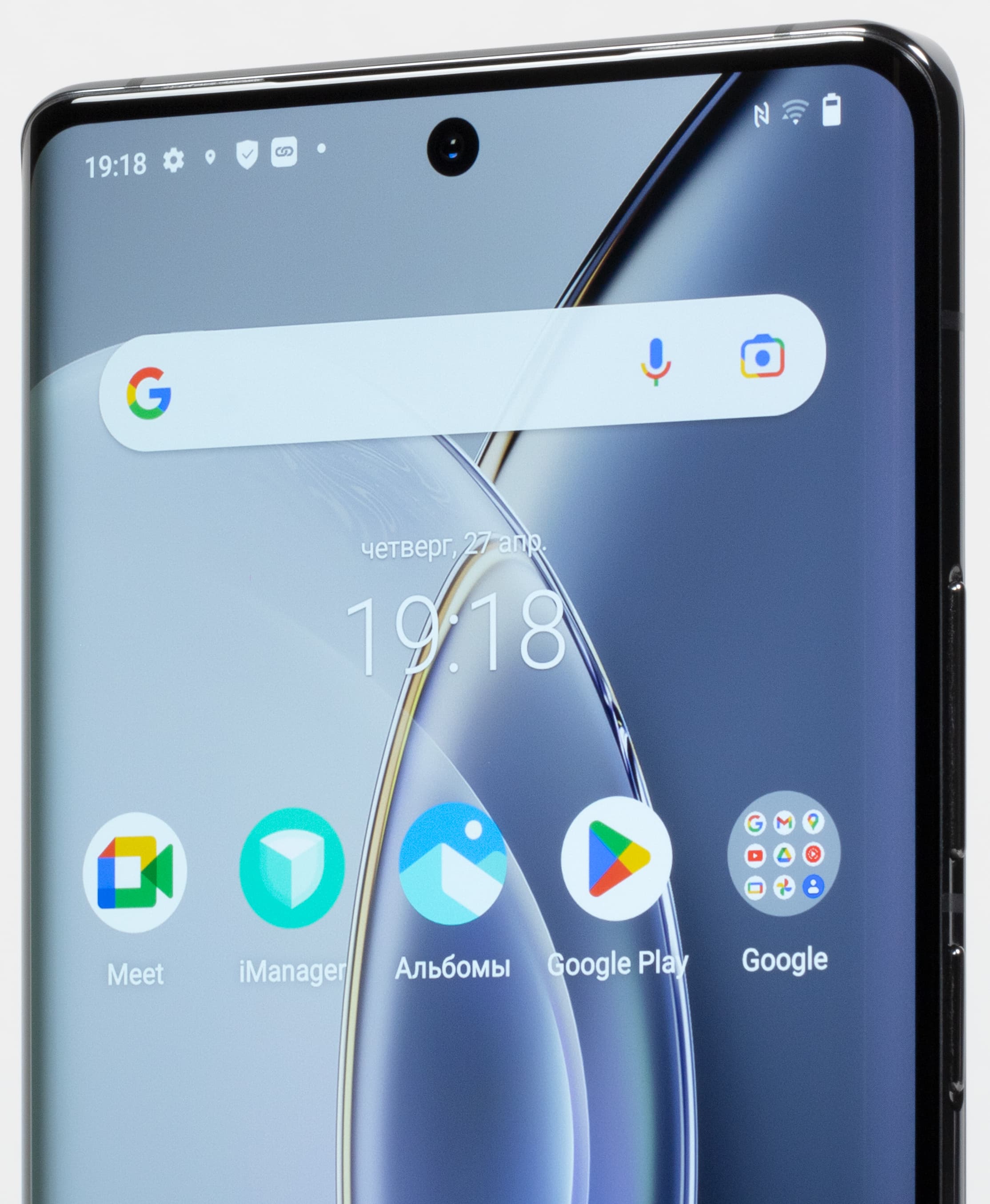 Корпус выполнен по стандартам флагманов последних лет: весь обтекаемый, с загибом лицевой и тыльной сторон на бока. Метал боковой рамки гладкий и скользкий, такая закругленная рамка не позволяет крепко удерживать смартфон в руке и уверенно поднимать его со стола — он прокручивается и выскальзывает. Спинка, правда, не скользкая и не маркая, но это делу не помогает. На практике лучше облачить устройство в надежный чехол.