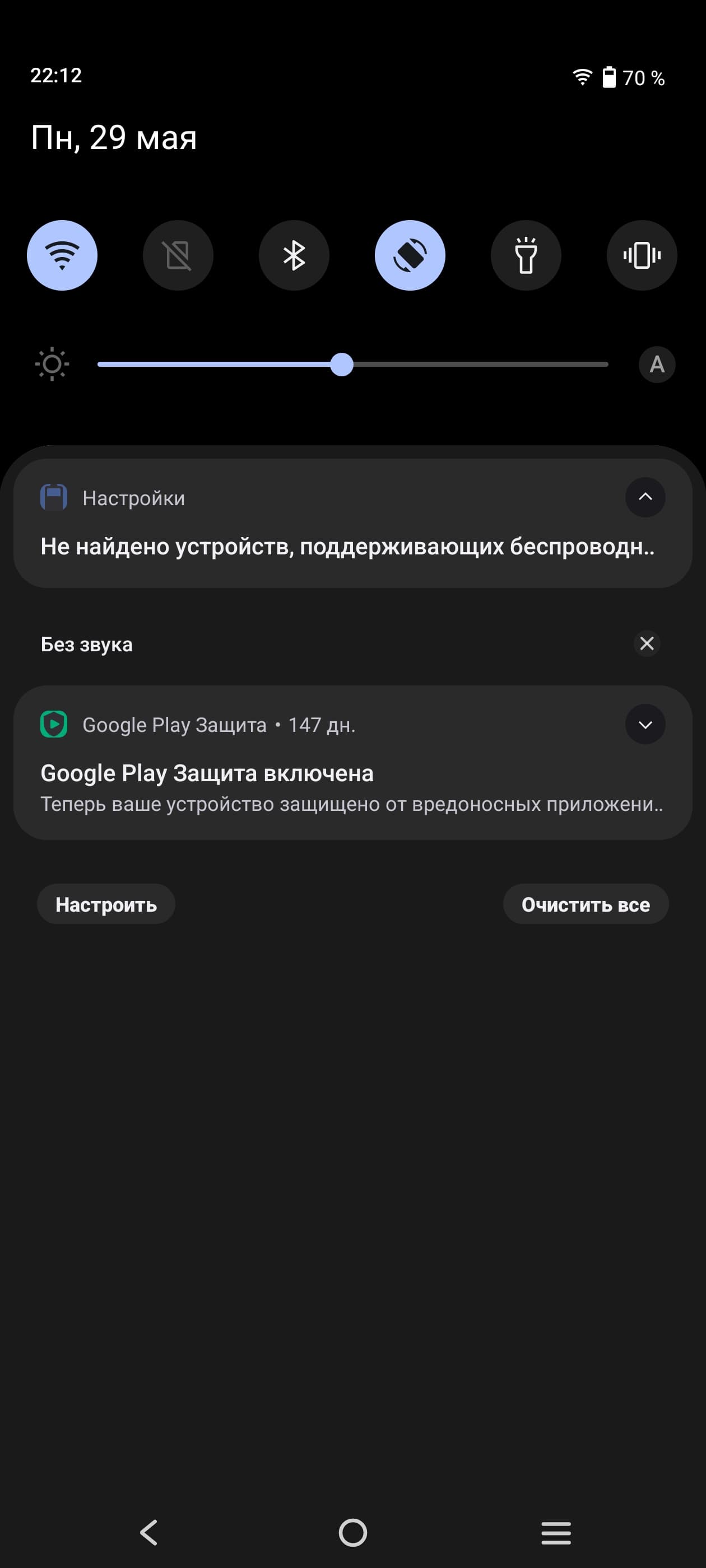 При ручном управлении яркостью и при выводе белого поля во весь экран максимальное значение яркости составило примерно 490 кд/м² в обычных условиях, на очень ярком свету оно повышается до 960 кд/м². Максимальная яркость очень высокая. В данном случае чем меньше площадь белого на экране, тем он светлее, то есть фактическая максимальная яркость белых участков будет почти всегда еще выше. В итоге, учитывая отличные антибликовые свойства, читаемость днем на солнце, должна быть на хорошем уровне, а темная тема не только экономит заряд аккумулятора, но способствует лучшей разборчивости информации на экране в условиях высокой освещенности. Минимальное значение яркости — 2 кд/м², то есть пониженный уровень яркости без проблем позволяет использовать устройство даже в полной темноте. Есть автоматическая регулировка яркости по датчику освещенности (он расположен под экраном близко к верхнему краю правее центра по горизонтали). В автоматическом режиме при изменении внешних условий освещенности яркость экрана как повышается, так и понижается. Работа этой функции зависит от положения ползунка регулировки яркости: им пользователь может попытаться выставить желаемый уровень яркости в текущих условиях. Если оставить все по умолчанию, то в полной темноте функция автояркости уменьшает яркость до 7 кд/м² (темновато), в условиях освещенного искусственным светом офиса (примерно 550 лк) устанавливает на 100 кд/м² (сойдет), а условно под прямыми лучами солнца повышает до 960 кд/м² (до максимума, так и нужно). Результат нас не совсем устроил, поэтому в полной темноте мы чуть увеличили яркость, получив в итоге для трех условий, указанных выше, следующие значения: 10, 100 и 960 кд/м² (идеальное сочетание). Получается, что функция автоподстройки яркости работает адекватно и позволяет пользователю настраивать свою работу под индивидуальные требования.