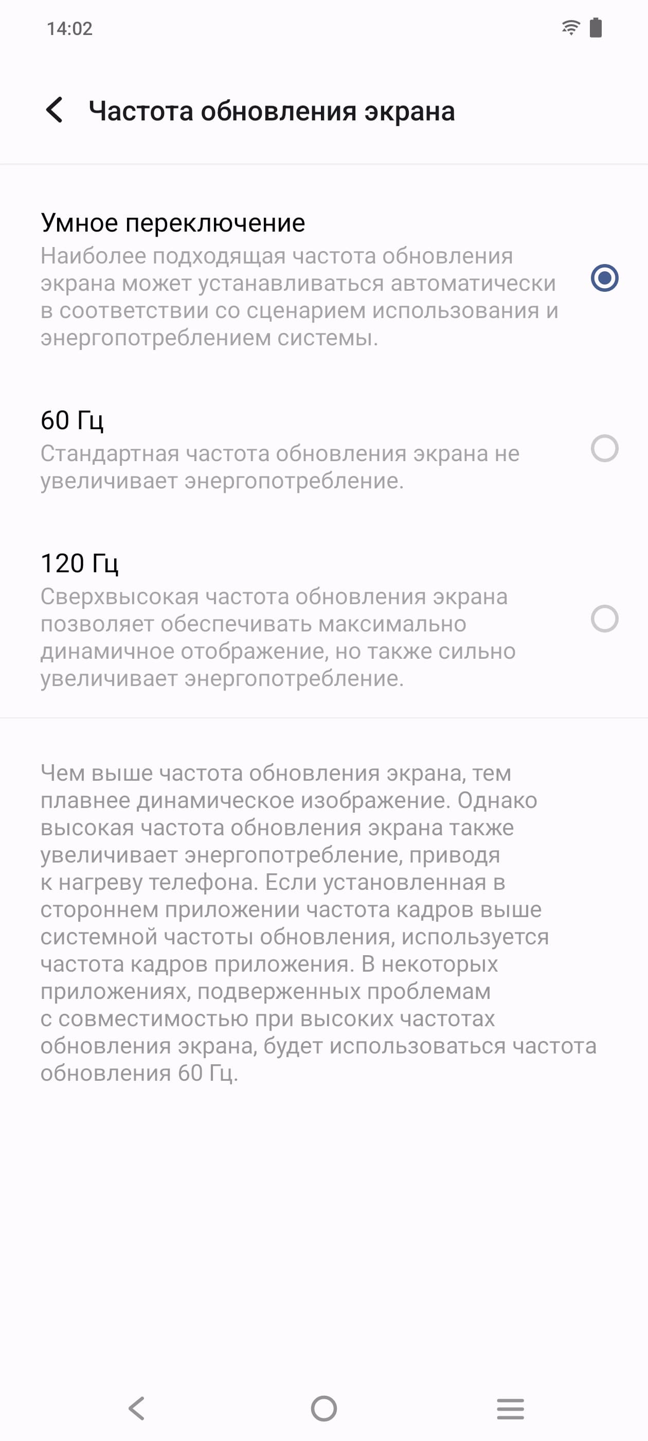 В настройках экрана можно включить режим с повышенной до 120 Гц частотой обновления: