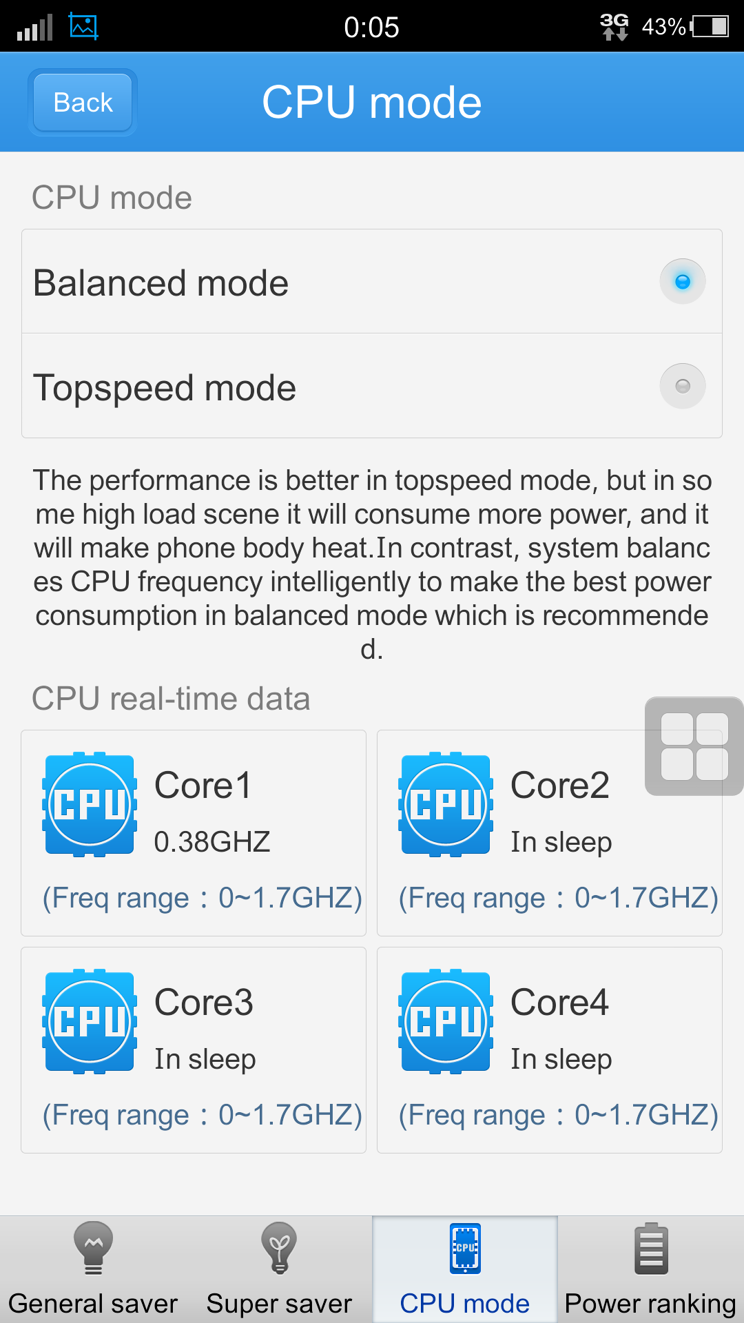 Эта утилита сочетает в себе сразу несколько функций. В ней есть кнопка «быстрой оптимизации» с завершением неактивных программ и очисткой кэша. Есть программирование черного списка абонентов, звонки и SMS от которых блокируются. Альтернативный менеджер приложений можно использовать для переноса их на другой раздел. Модуль контроля и управления питанием позволяет определить наиболее прожорливые программы, включить специальный режим экономии (только 2G, только основные приложения, выбрать режим работы процессора (сбалансированный или максимальной производительности).