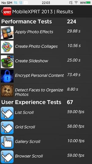 По результатам тестирования в бенчмарках из всех новинок на новой платформе флагман Oppo однозначно лидирует, за ним вплотную идет с небольшим отставанием сегодняшний герой, и вместе они обходят по всем тестам таких общепризнанных мировых флагманов, как Samsung Galaxy S5, Sony Xperia Z2 и LG G3. Впрочем, разница не столь велика, все топовые смартфоны, работа которых основана на Snapdragon 801, это наиболее мощные на сегодняшний день мобильные аппараты на рынке, аппаратных мощностей которых еще долго будет хватать для выполнения любых поставленных задач.
