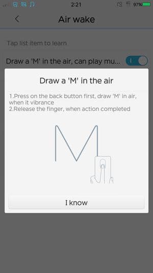 Оболочка Funtouch OS насыщена всевозможными улучшениями и дополнительными функциями. Очень много внимания уделено, в частности, управлению жестами: можно, к примеру, запускать программы не только прочертив определенные знаки на дисплее, но даже выполняя некие пассы с помощью самого смартфона прямо в воздухе. Так, например, чтобы запустить музыкальный проигрыватель, можно начертать литеру «М» на экране смартфона, а можно и провести самим смартфоном в воздухе, рисуя такой же знак.