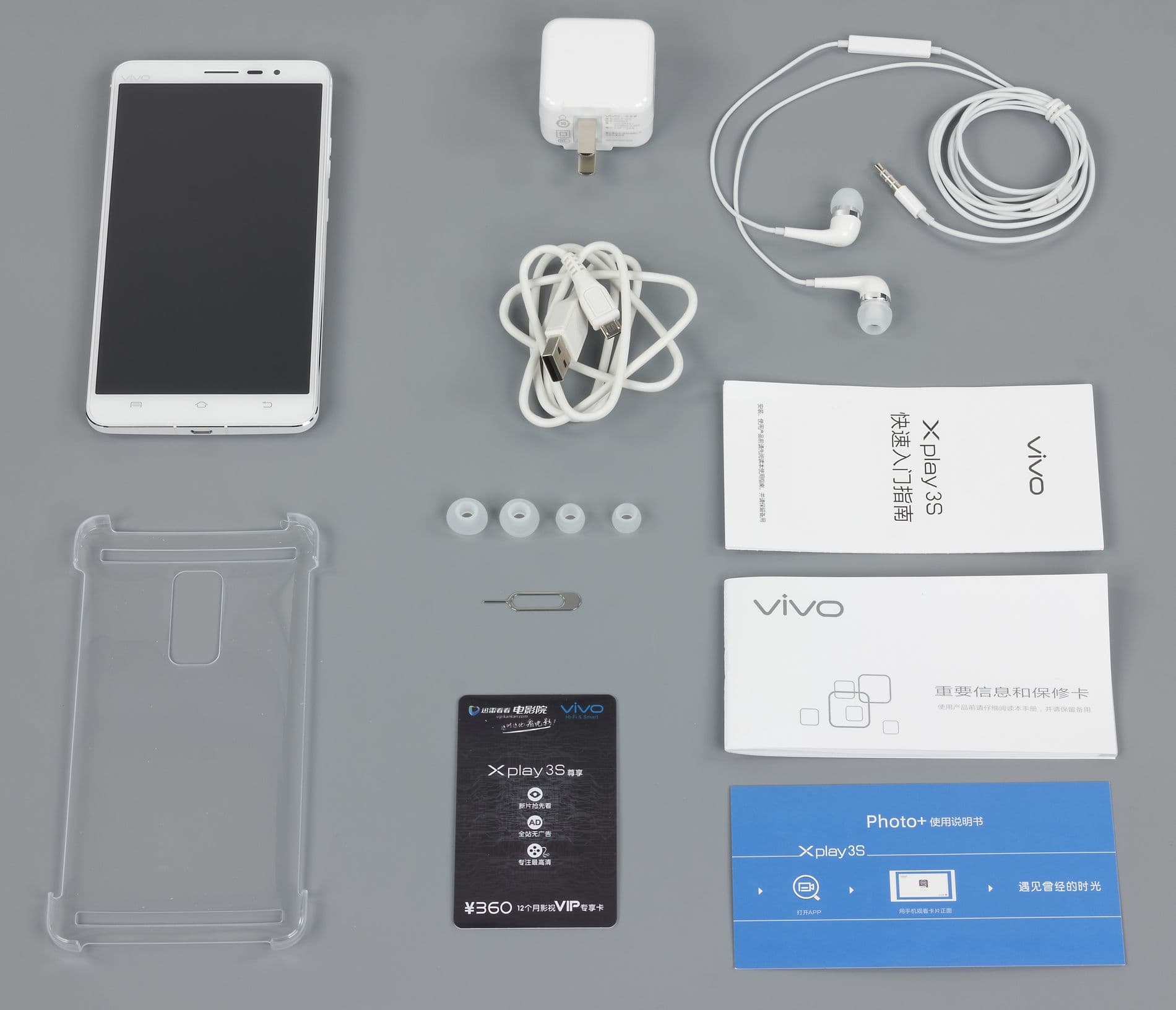 Смартфон Vivo Xplay 3S поставляется в широкой, но достаточно плоской коробке, целиком выполненной из картона. Упаковка претендует на премиальный уровень, внутри обустроено несколько различных по размеру отделений, аксессуары уложены и распределены аккуратно, хоть сама комплектация и небогата.