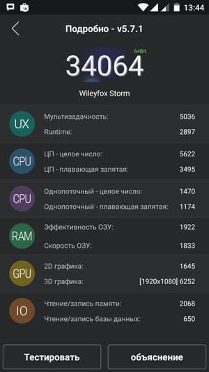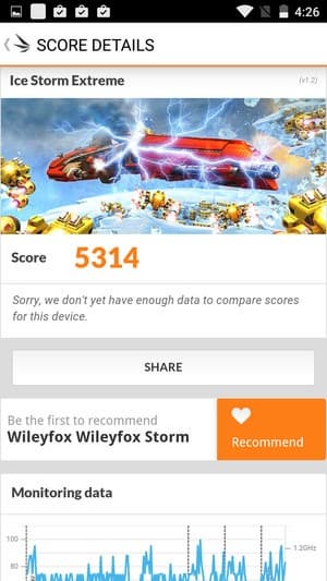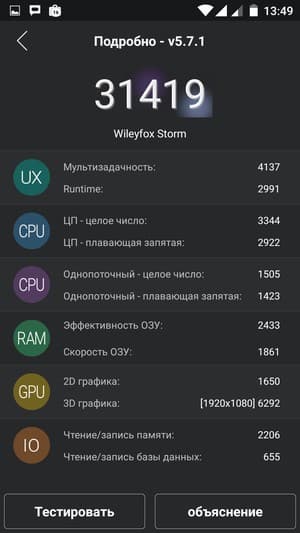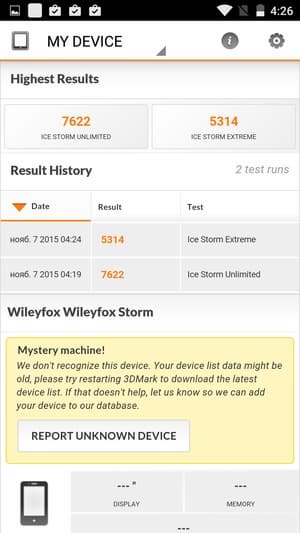 По результатам тестирования платформа Qualcomm Snapdragon 615 продемонстрировала результаты ожидаемо скромные по современным меркам: в AnTuTu это примерно 30К очков на фоне 60К и более у топовых моделей, то есть это уверенный средний уровень, никак не выше. Кстати, у того же Xiaomi mi 4i с более мощными ядрами результат в этом тесте превышает 35К. Если сравнивать с другими платформами, то и здесь результат будет не в пользу Qualcomm Snapdragon 615: например, HiSilicon Kirin 935 и Mediatek MT6752 в этом тесте набирают примерно по 42-45К очков, что уж говорить о флагманской Qualcomm Snapdragon 810, результаты которой примерно в полтора раза выше. Это к слову о том, что Wileyfox Storm любители мобильной техники часто сравнивают с другим продуктом под названием One Plus 2, создатели которого также взяли курс на насыщение рынка качественными смартфонами по демпинговым ценам. Только вот в плане аппаратной производительности эти два смартфона оказываются совершенно неравными. Сравниться по производительности с Qualcomm Snapdragon 615 из современных SoC может разве что упрощенная Mediatek MT6753, довольно сильно урезанная по сравнению с Mediatek MT6752.